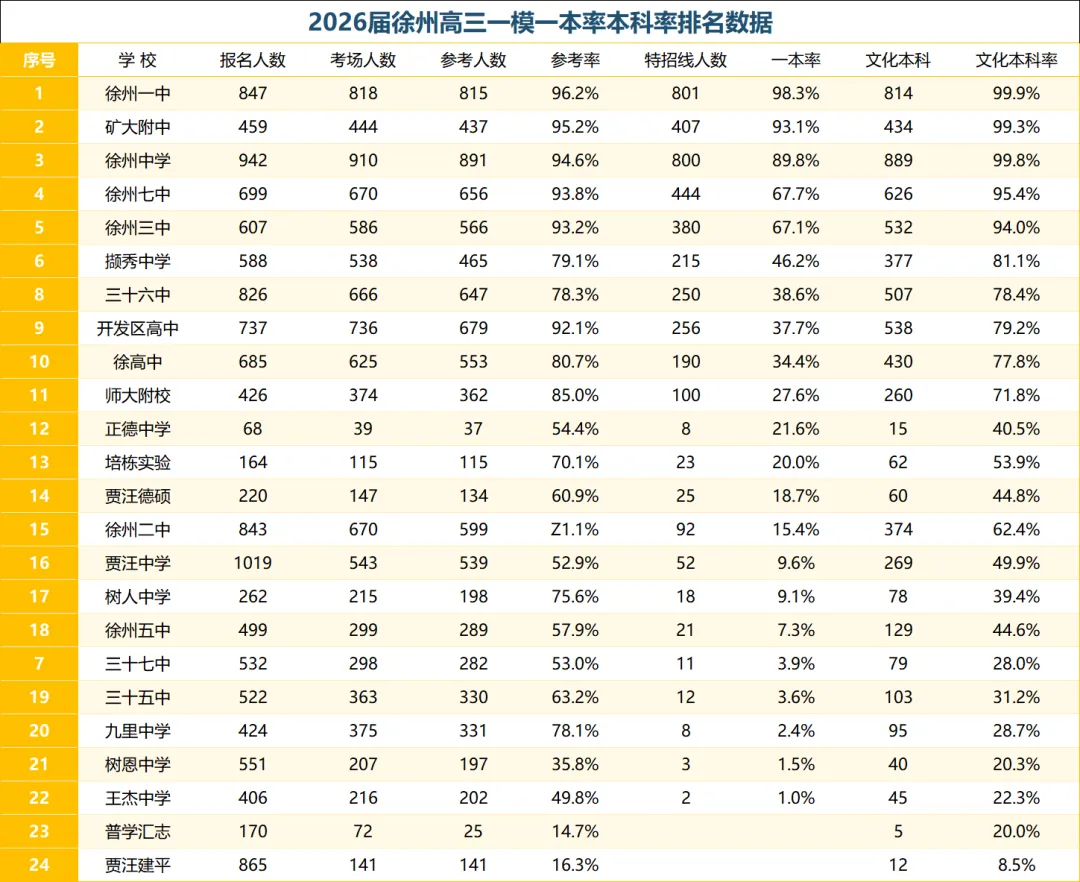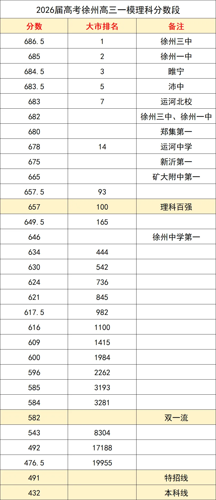【高三一模】2026届徐州大市高三一模物理组分数段、双一流、特招线、本科划线,瞄准自己的徐州大市排名