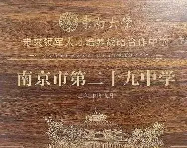 2024年9月,东南大学授予南京市第二十九中学“未来领军人才培养战略合作中学”称号,并颁发双高协同育人铜牌,标志着两校在拔尖创新人才早期识别与贯通培养上步入新阶段。通过专家引领、课题浸润与项目共研,着力培育学子的科学志趣、创新精神与家国情怀,共同为未来科技发展储备核心力量。