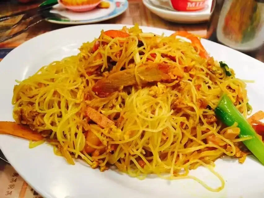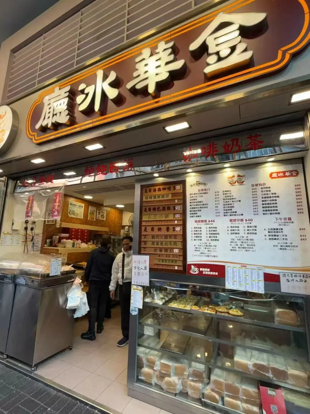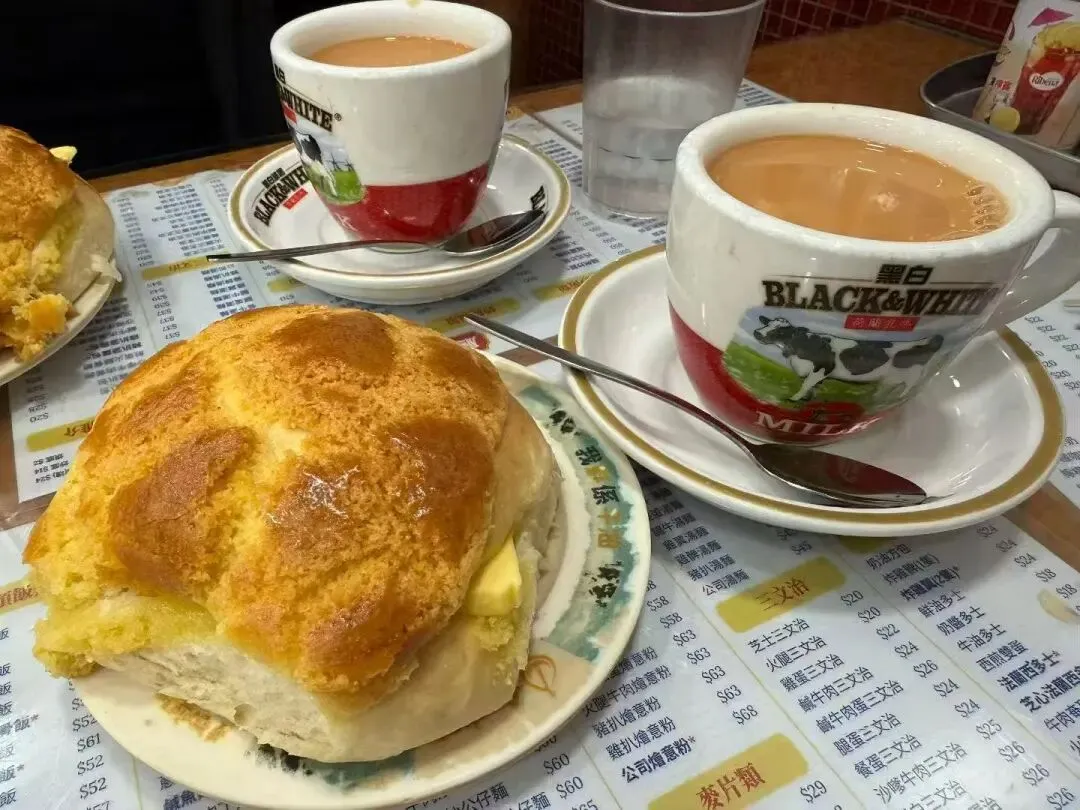 金华冰厅的菠萝油是我心目中最好吃的,超大一个,黄油带着点恰到好处的咸味。我个人很推荐吃他家的星洲炒粉,搭配一杯相当标准的奶茶。