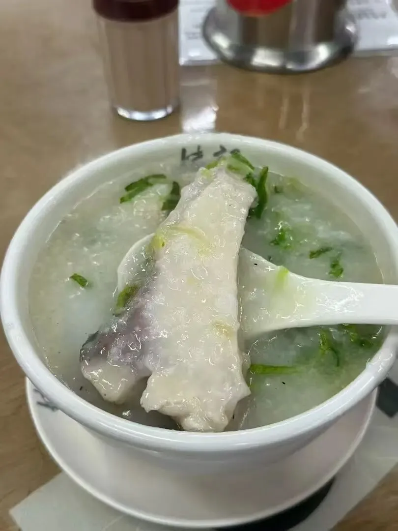 藏在熟食中心里的粥铺,生滚鱼腩粥是值得专程前来的所在,鱼腩特别大块,一点腥气都没有,只有鲜味,粥里多放些胡椒粉,泡根油条,绝对的平靓正。