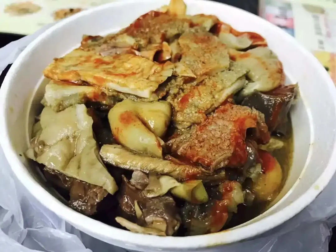非常小的一家面店,吃面都要拼桌的那种,可以点上一碗双拼面,牛腩和牛什的味道都很浓郁,不过我更推荐尝尝他家的叉烧面,我觉得比牛肉类的都好吃。
