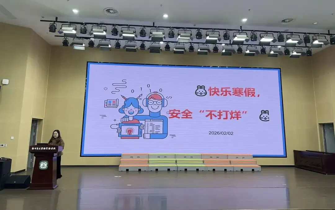 为切实加强寒假前学生安全教育,筑牢校园安全防护网,让全体一年级学子度过一个平安、快乐、有意义的假期,2026年2月2日,徐州市大学路实验学校南校区小学部特开展一年级寒假安全主题学生会议,本次会议由一(3)班班主任邹佳蓓老师主讲,一年级全体教师和学生参与。