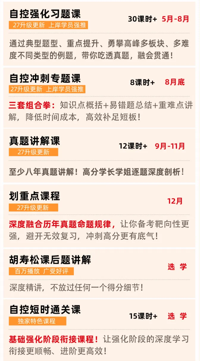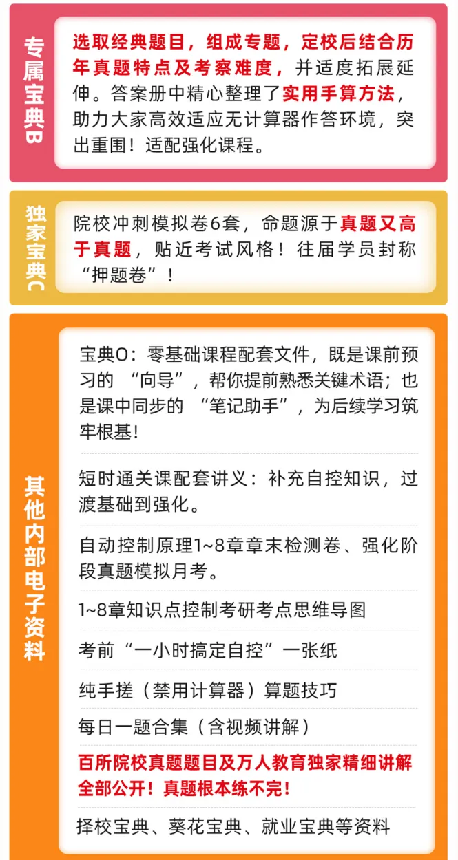 📘 专业课:系统覆盖控制核心内容,课程结构清晰,直指高频考点;📚 公共课:同步配套精选资料与学习安排,不用再四处找资料、反复对比;