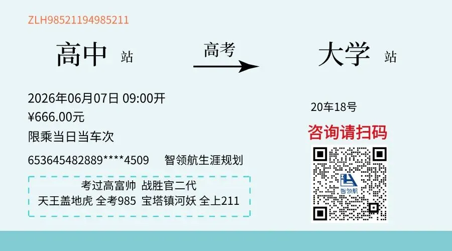 考生家长想了解更多资讯?如何规划才能不错失机会?为此,智领航生涯规划老师特建立【2026高考报考交流群】,群内有更多资讯、最新招生政策、校测备考干货、专业老师答疑等,助力考生高考!