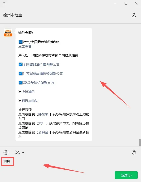 输入【油价】,即可获取