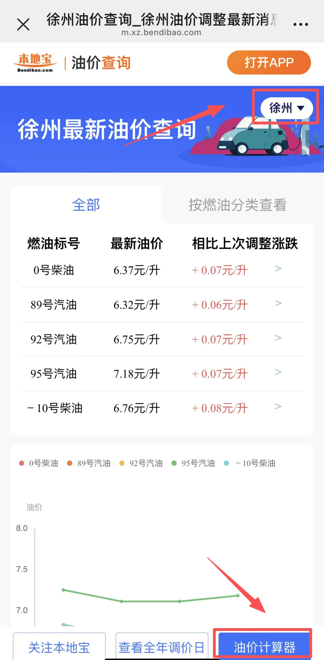 ①查询徐州的油价信息