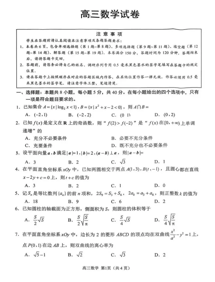 试题下载链接:2026苏州高三期末数学试卷+答案.pdf