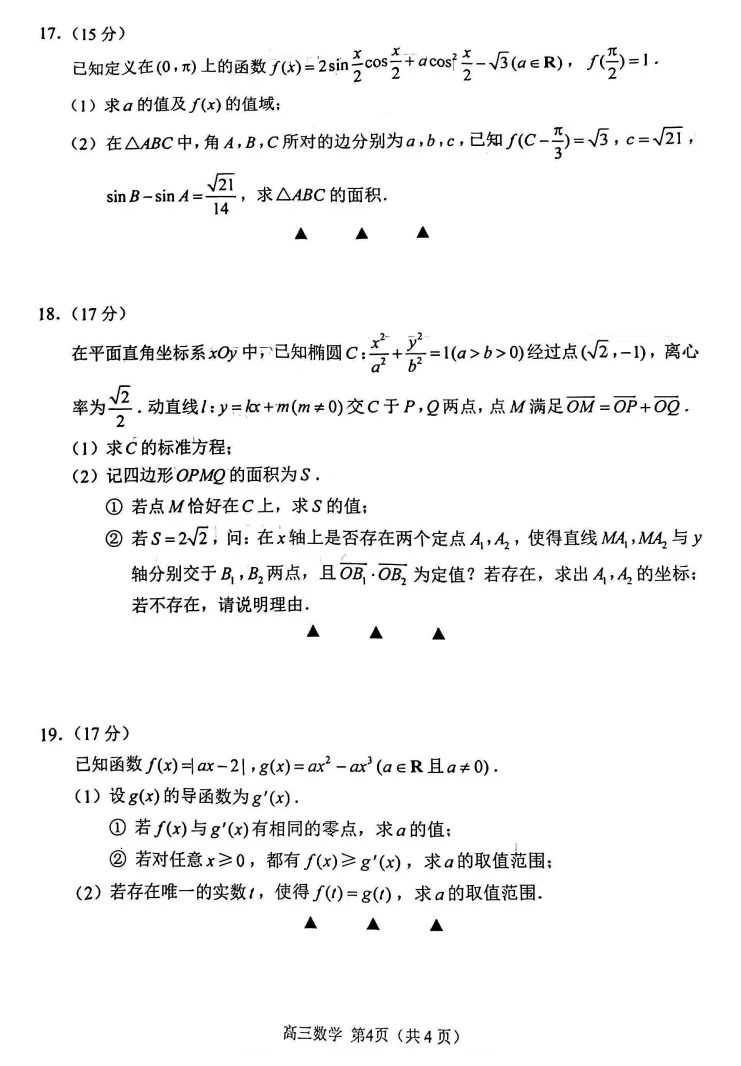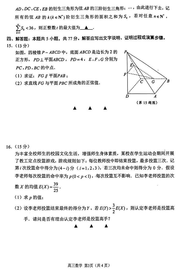 16.苏北八市三模(南通三模)三道压轴小题解析