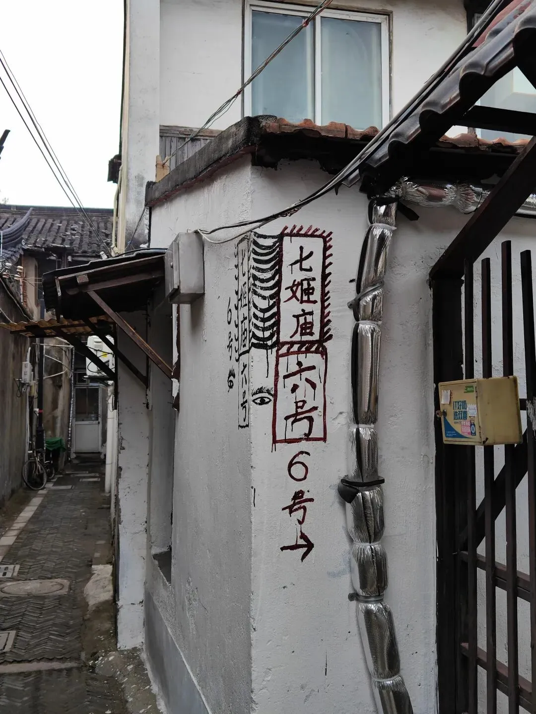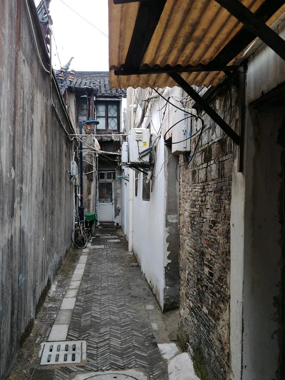 上篇发布之后网友留言说这渣男后来被罗贯中写入三国演义,虚拟了个人物裴元绍被赵云一枪毙命,也算是替七位痴心美娇娘出了一口恶气,渣男死不足惜,只是可惜了这几位痴情的姑娘。又验证了一下,当年罗贯中曾为张士诚幕僚,应该是对潘元绍这种行为不齿,裴和潘发音又很类似,把他写进小说里让他死一次也合情合理,果然文人的比堪比刀枪。上次止步于蒋庙,只看到了七姬庙弄的路牌,并未走进去深入了解,这次特地过来进去一看究竟。最近走街串巷对苏州老城古巷有了更深刻的认识,老城古巷古建很多,但凡门口贴个受控建筑的牌子、上边标注着某某宅之类的,或者一个门洞内有一排电表的,这类巷子绝对比我想象中和一眼看上去要深得多。远看巷子尽头是座阁楼或者一套房子到底无路可走,真走到底两侧通常会有两道90度的直角弯,将巷子延伸到更远的深度,不到近前根本发现不了。转角处很窄也就一两米的宽度,拐角墙壁上经常有自行车、电动车把手划出的沟槽,可见这路之窄角度之大,七姬庙弄就是如此这般的结构。