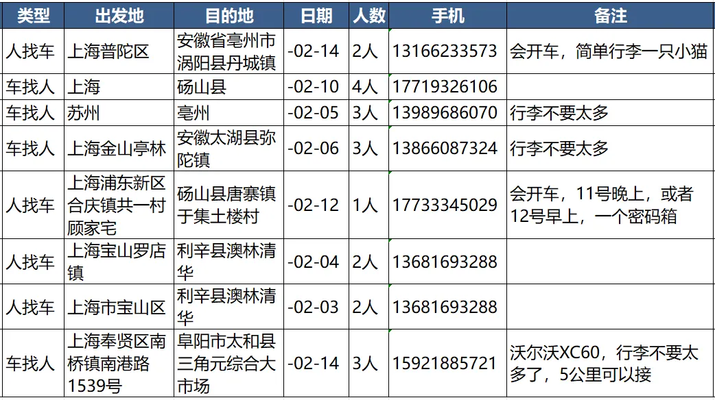 上海/苏州到宿州砀山/亳州涡阳/阜阳太和/太湖县/利辛县-2月出发-顺风车拼车-安徽人在上海