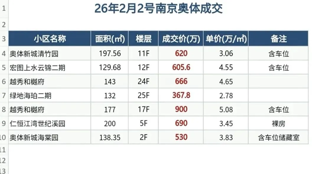2026年2月2日,南京建邺区存量房成交数据统计