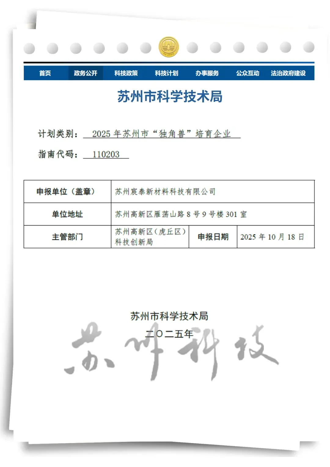 近日,经专家评审及信用审查,苏州市科技局公布2025年度 “独角兽” 培育企业名单,苏州宸泰新材料科技有限公司榜上有名!