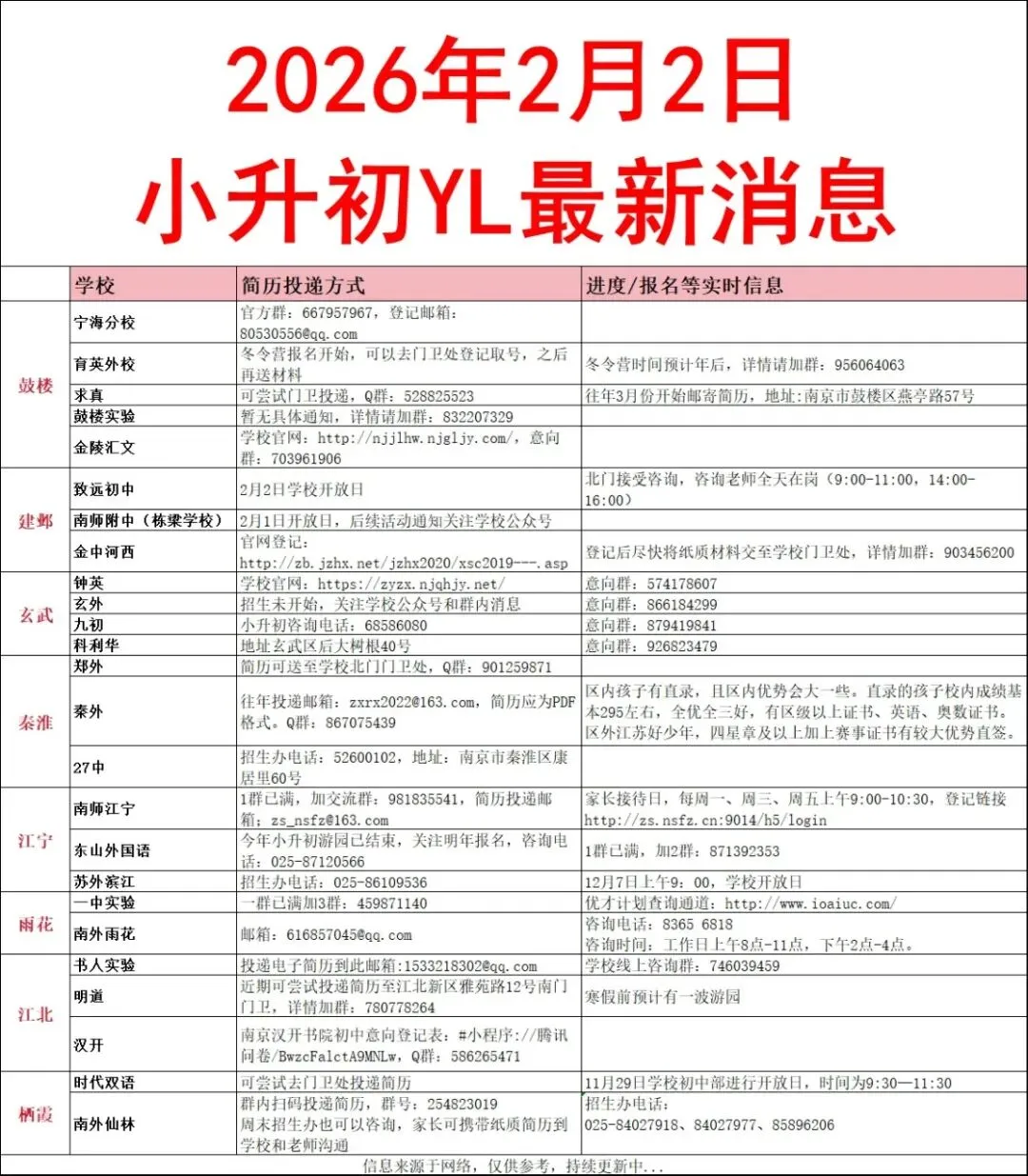 2、育英外校:门卫处登记收简历,预计1月31日冬令营启动,群号:956064063
