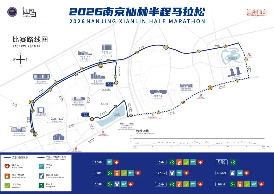 羊山公园西门(起点)→羊山湖路→九乡河西路→仙林大道→仙林湖路→纬地路→文澜路→文澜路(折返)→文澜路→九乡河西路(终点)2026仙马打造全流程“仙马仪式感”。本届赛事融合仙马特色,打造 “一路一景” 的独特赛道风光。赛道及终点布设多元体验空间:涵盖美食、非遗、文创、农产的特色市集,搭配非遗体验区、科技互动点等。此外,仙马还将用科技为每位选手制作专属AI短视频。2026年4月12日,2026南京仙林半程马拉松将再次来袭,世界田联精英标赛事,你中签了吗?