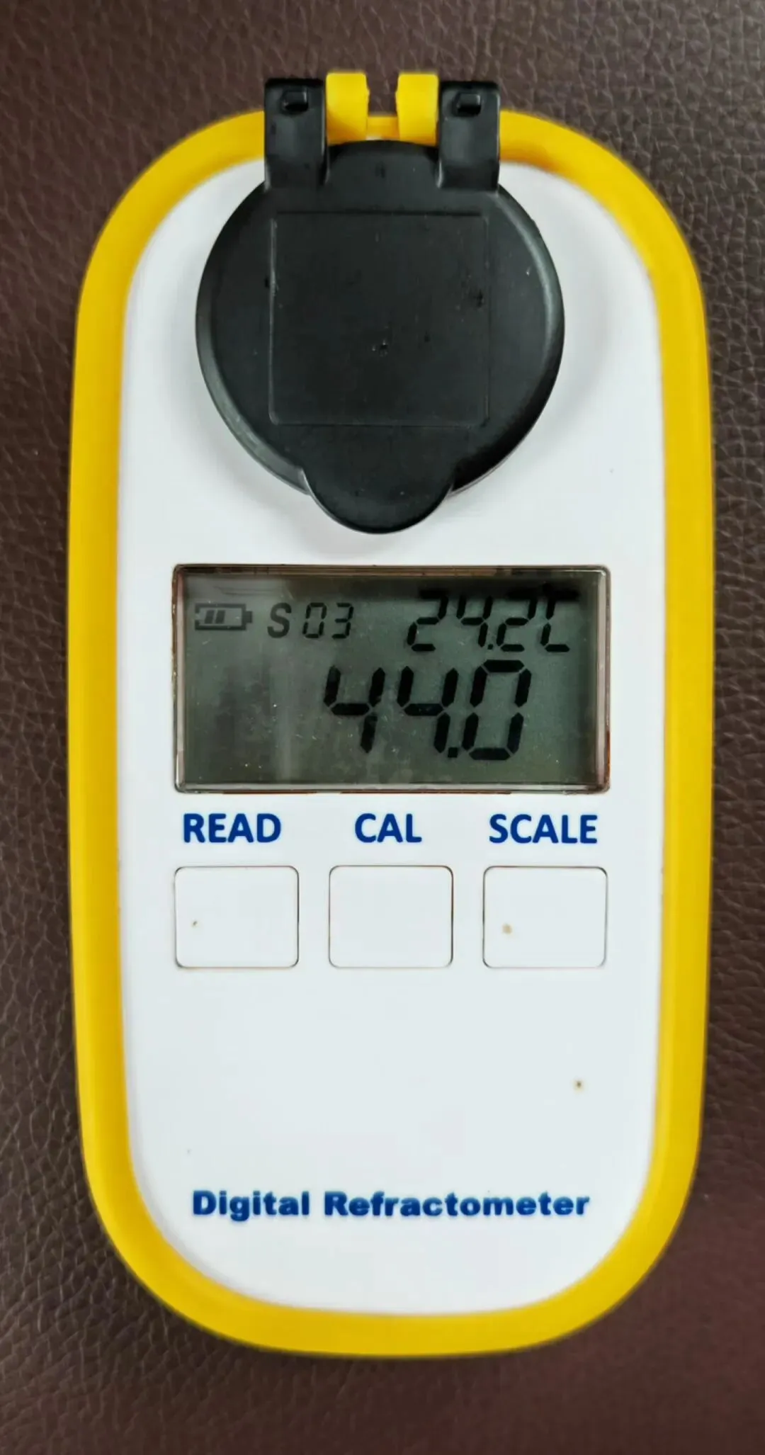 苏州太湖金如兴白玉枇杷蜜,实验进行中。太湖波美度41.7,到北京温室放3天44.0成分降解情况取样检测中