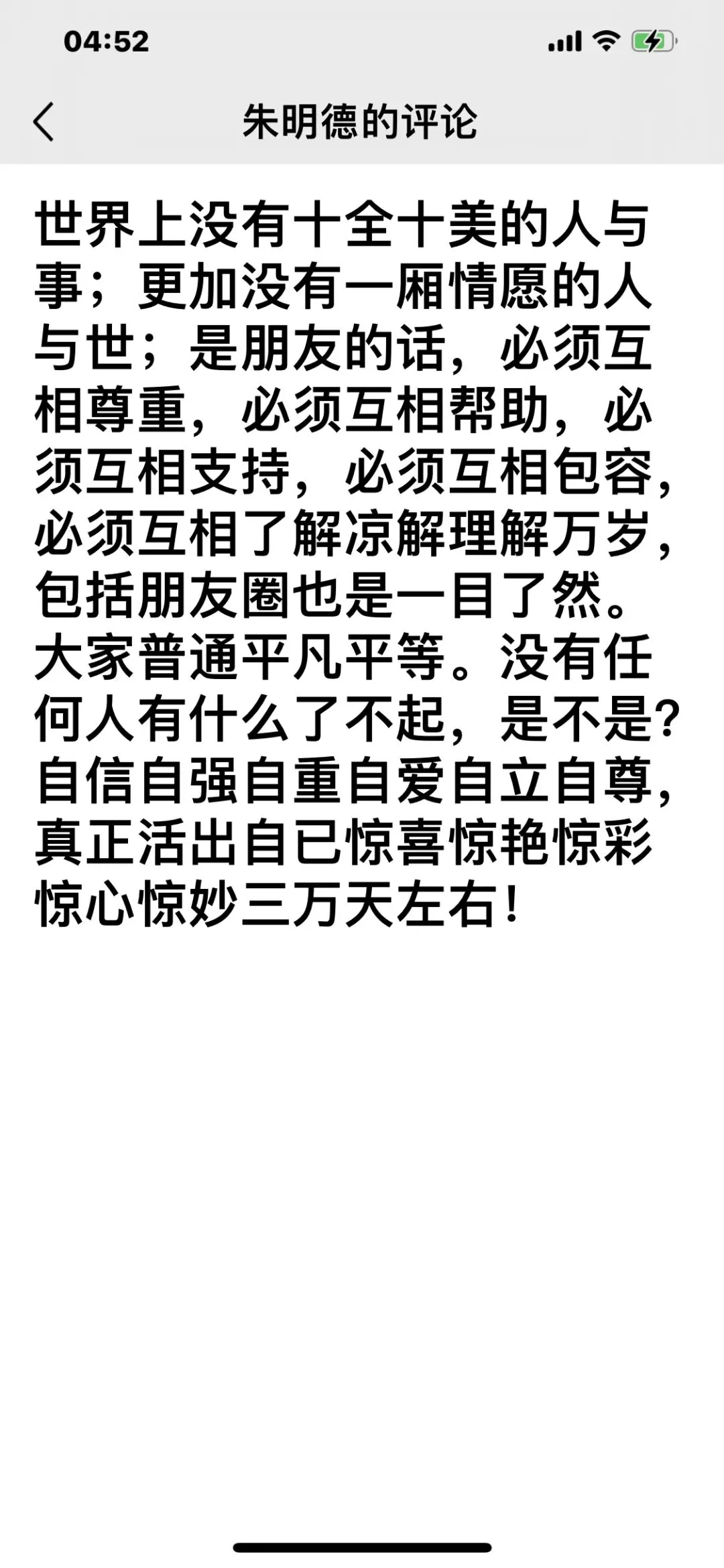 [太阳]早安![玫瑰][咖啡]世界上没有十全十美的人与事;更加没有一厢情愿的人与世;是朋友的话,必须互相尊重,必须互相帮助,必须互相支持,必须互相包容,必须互相了解凉解理解万岁,包括朋友圈也是一目了然。大家普通平凡平等。没有任何人有什么了不起,是不是?自信自强自重自爱自立自尊,真正活出自已惊喜惊艳惊彩惊心惊妙三万天左右!