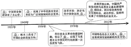 21. 某校高一年级学习小组围绕“马克思主义中国化时代化的历史进程”展开探究,绘制了如下思维导图,请将图内相应序号的内容补充完整。