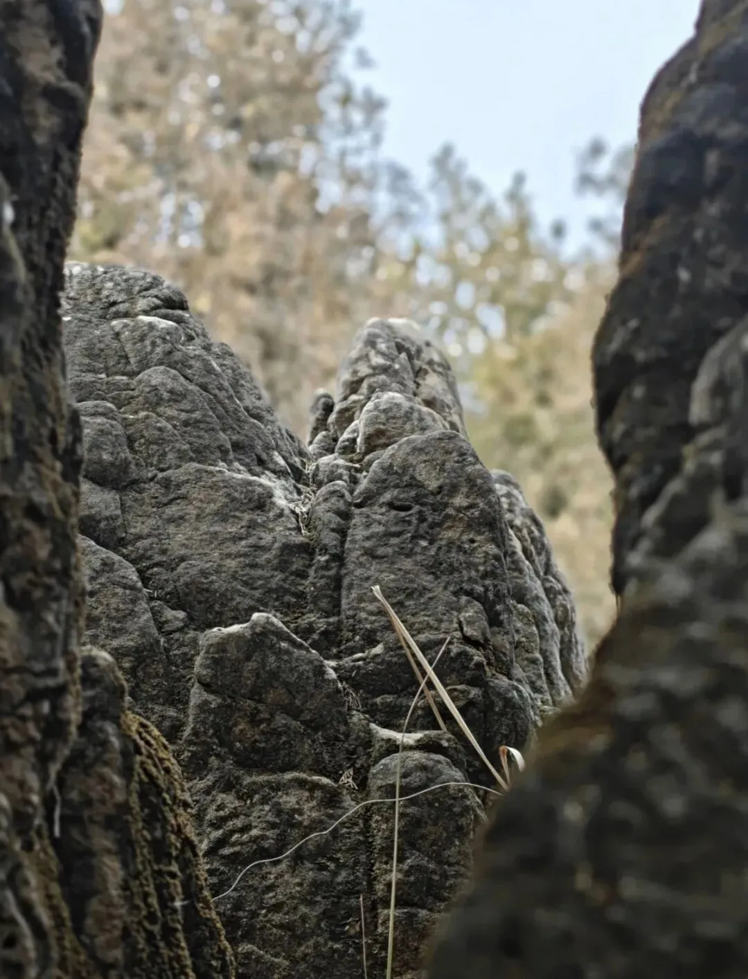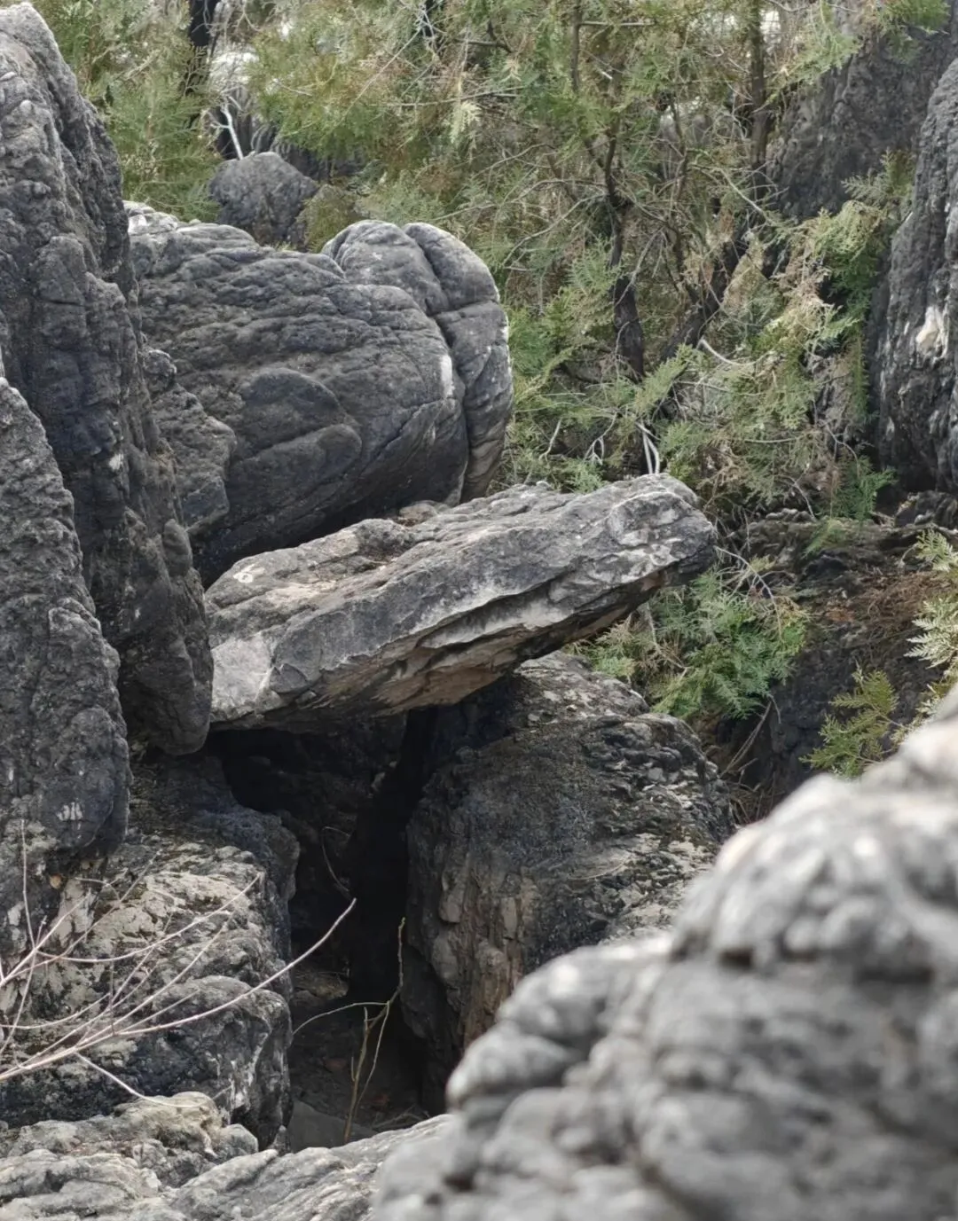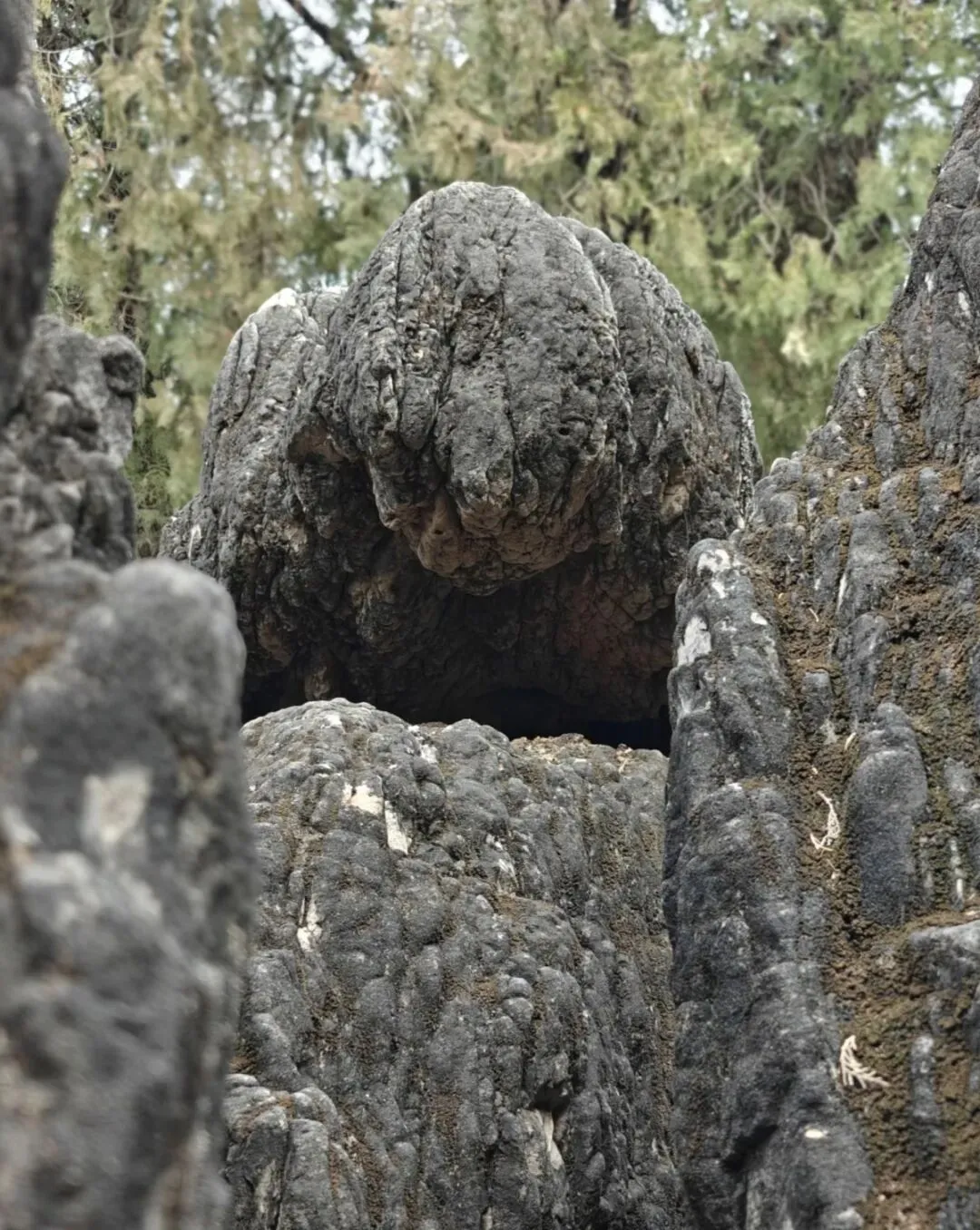 上次讲到的燕子埠的石林,那真的是奇形怪状、惟妙惟俏。看着这下面的像什么?像不像一只老乌龟。像是巨龟从石缝中探出,又像是巨蟒在地上潜行。