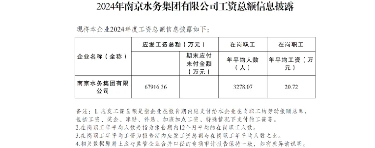 南京东南国资投资集团、南京大数据集团和南京水务集团2024年在岗职工年平均工资分别为22.66万元、21.16万元和20.72万元。