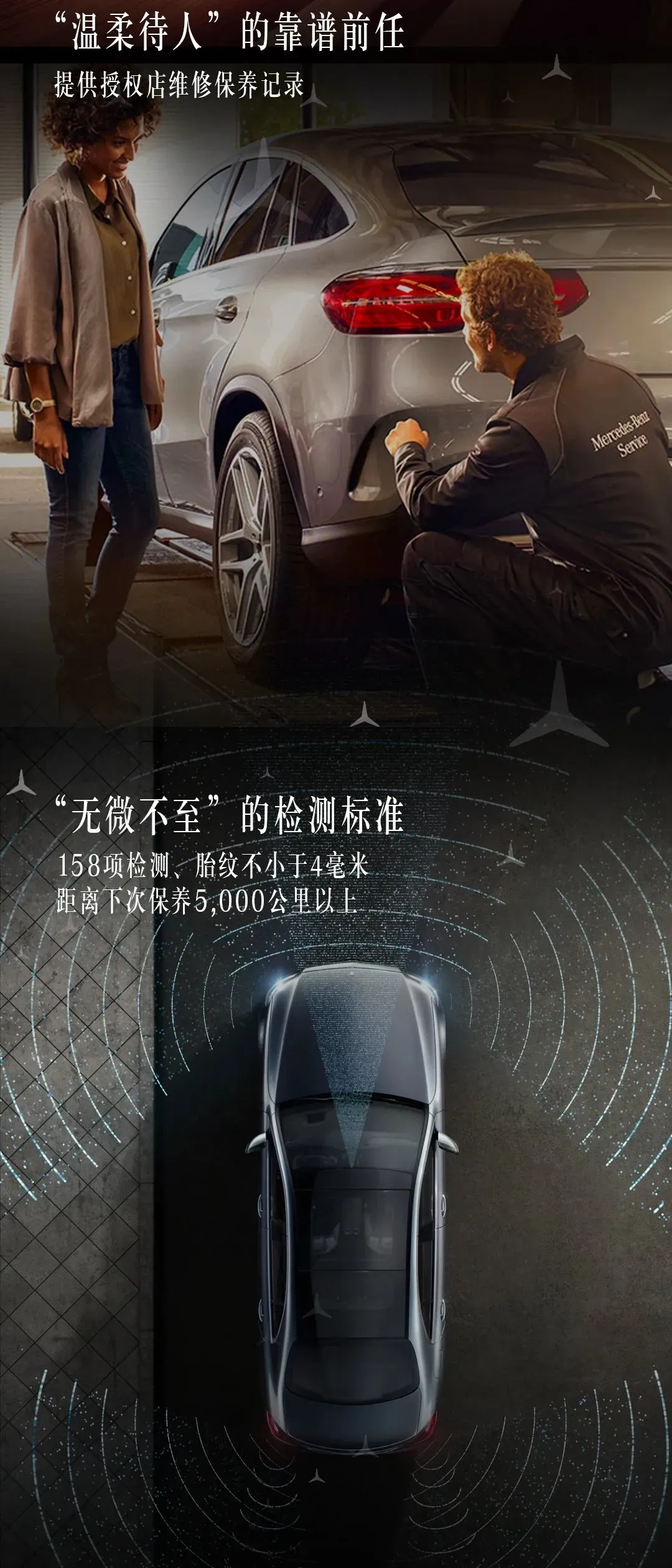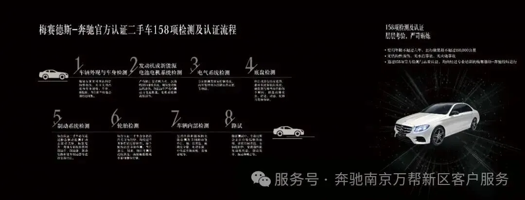 全方位严格甄选专业技师158项检测及认证服务,均由经过专业培训的梅赛德斯-奔驰技师进行