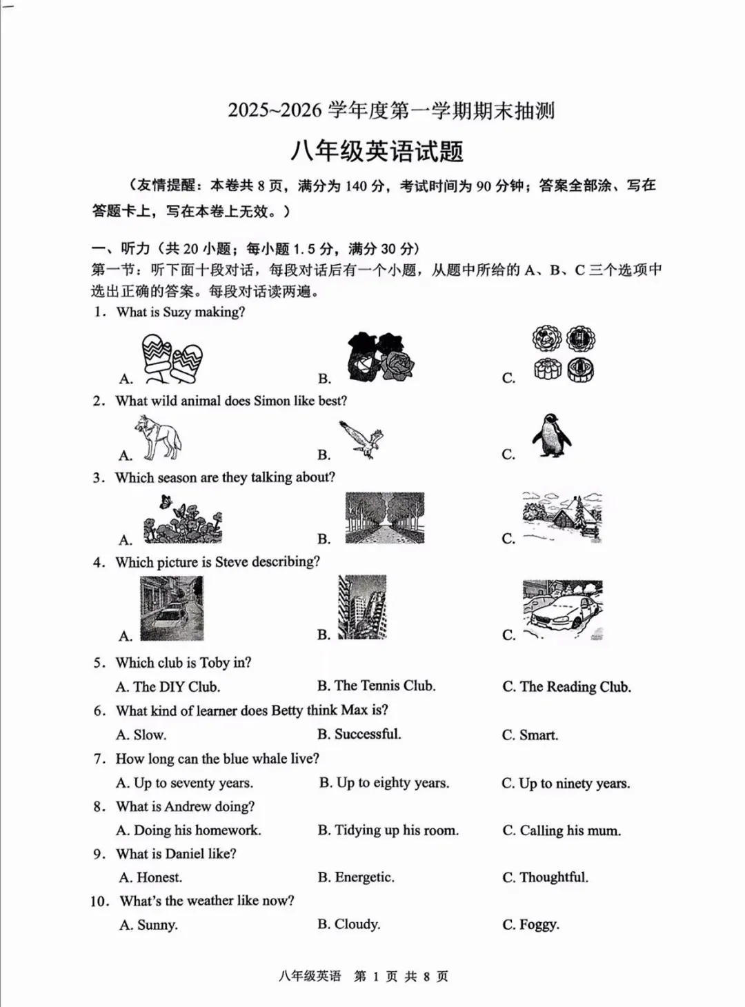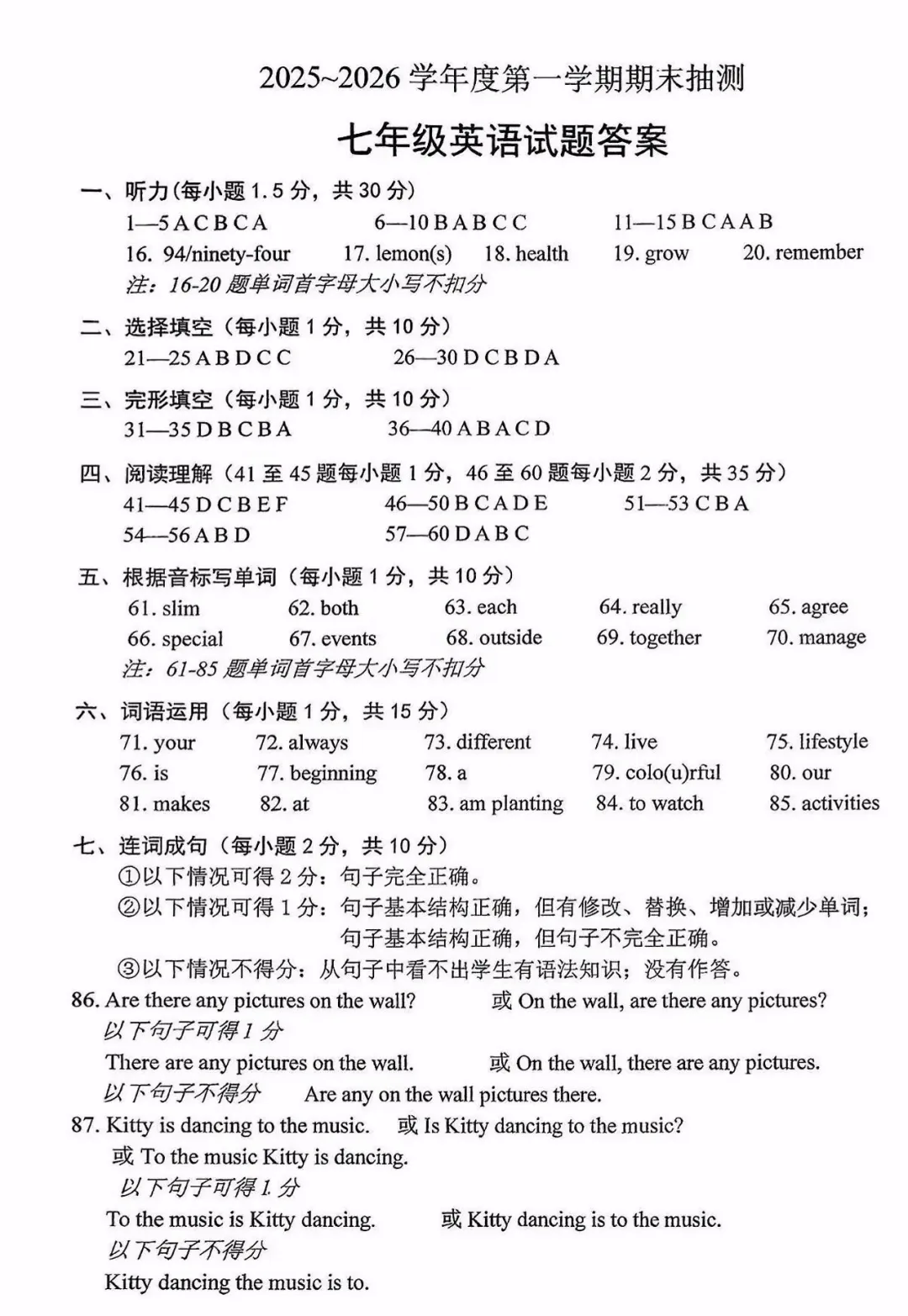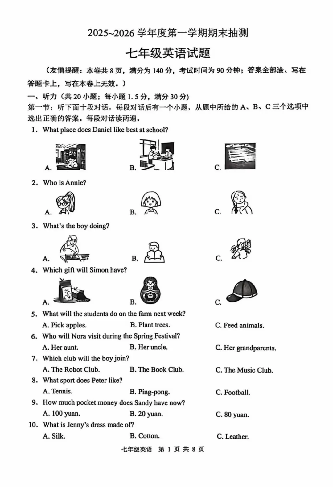 徐州七八年级上学期期末英语试卷及答案