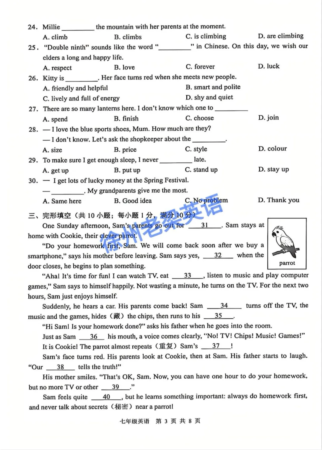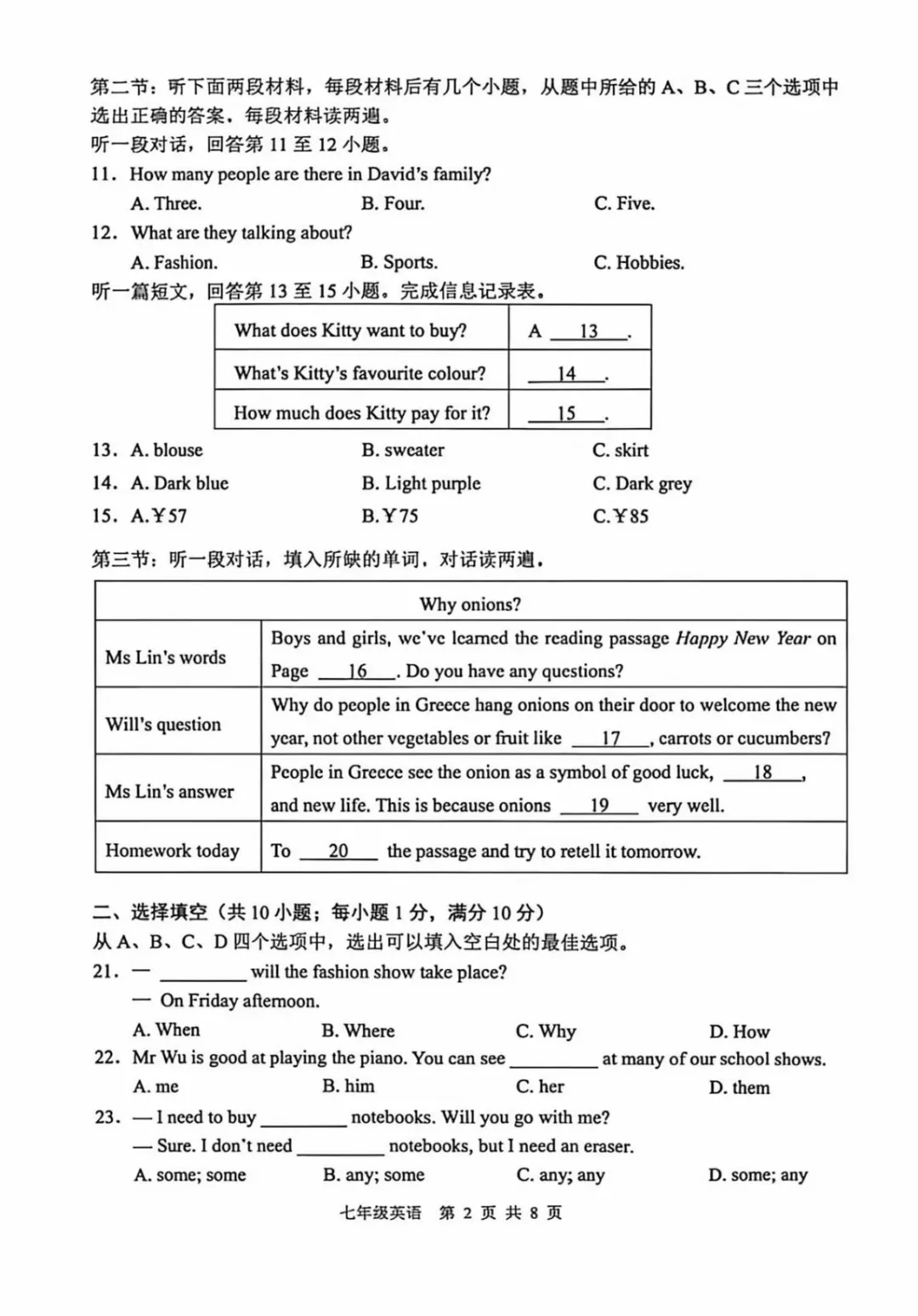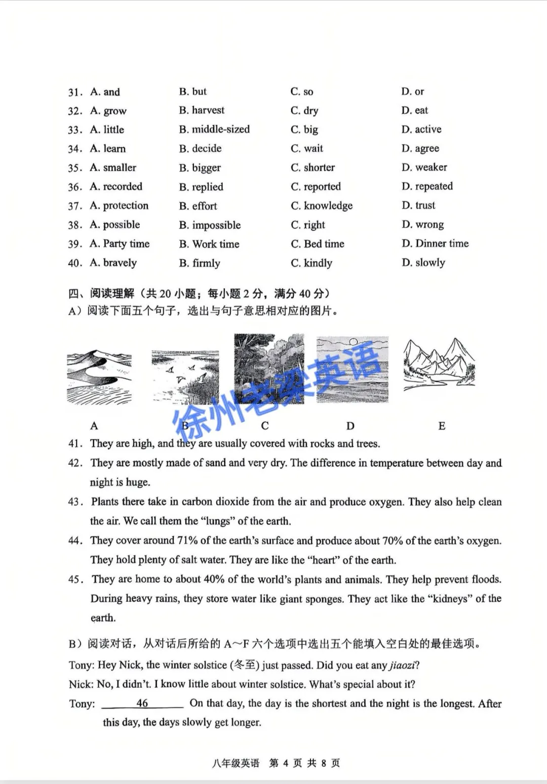 老梁英语给孩子们整理好了刚考完的初一和初二的期末英语试卷及答案,供大家参考学习