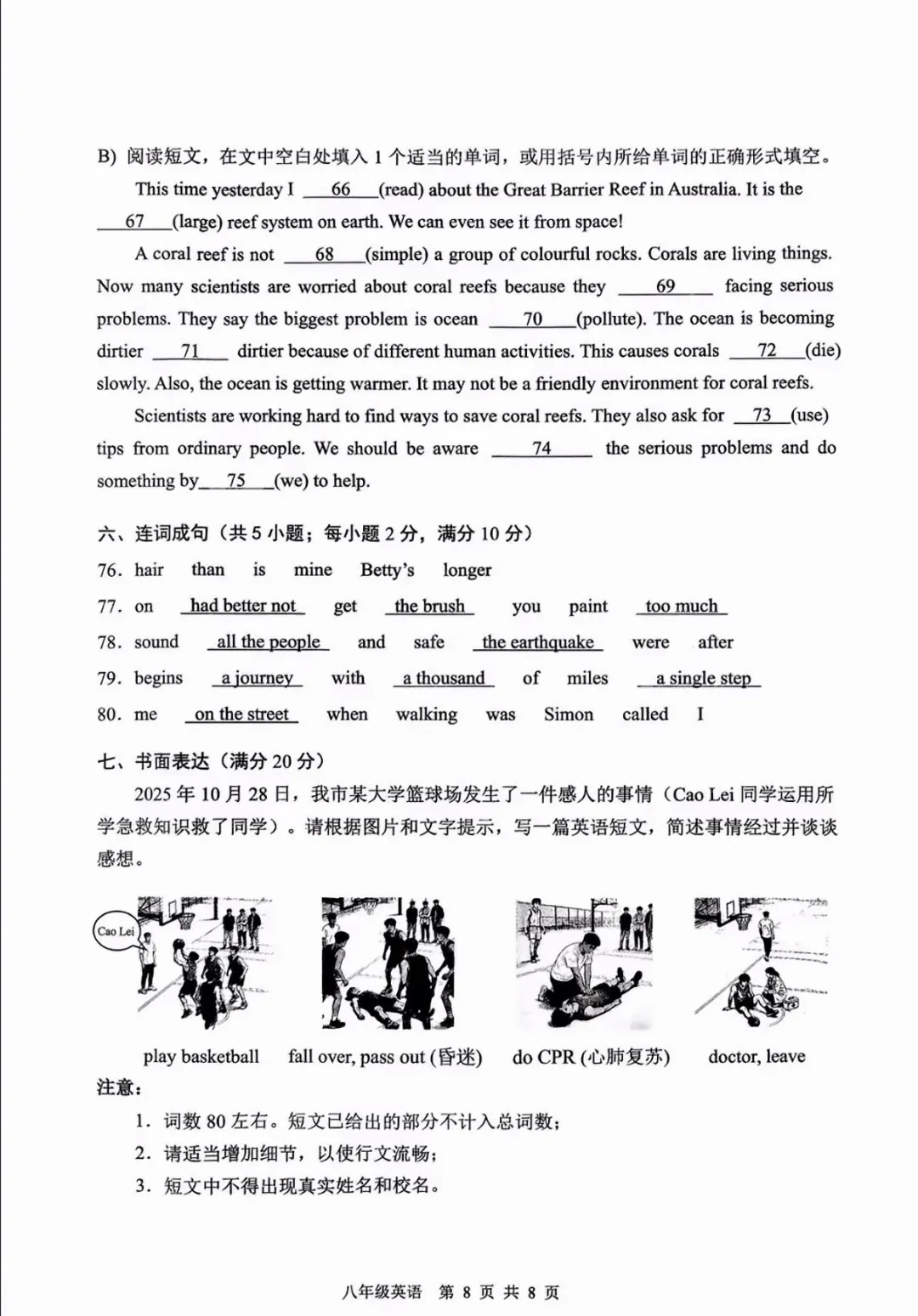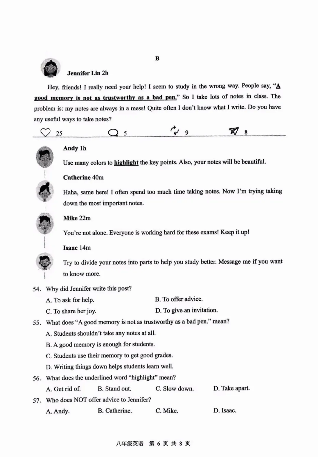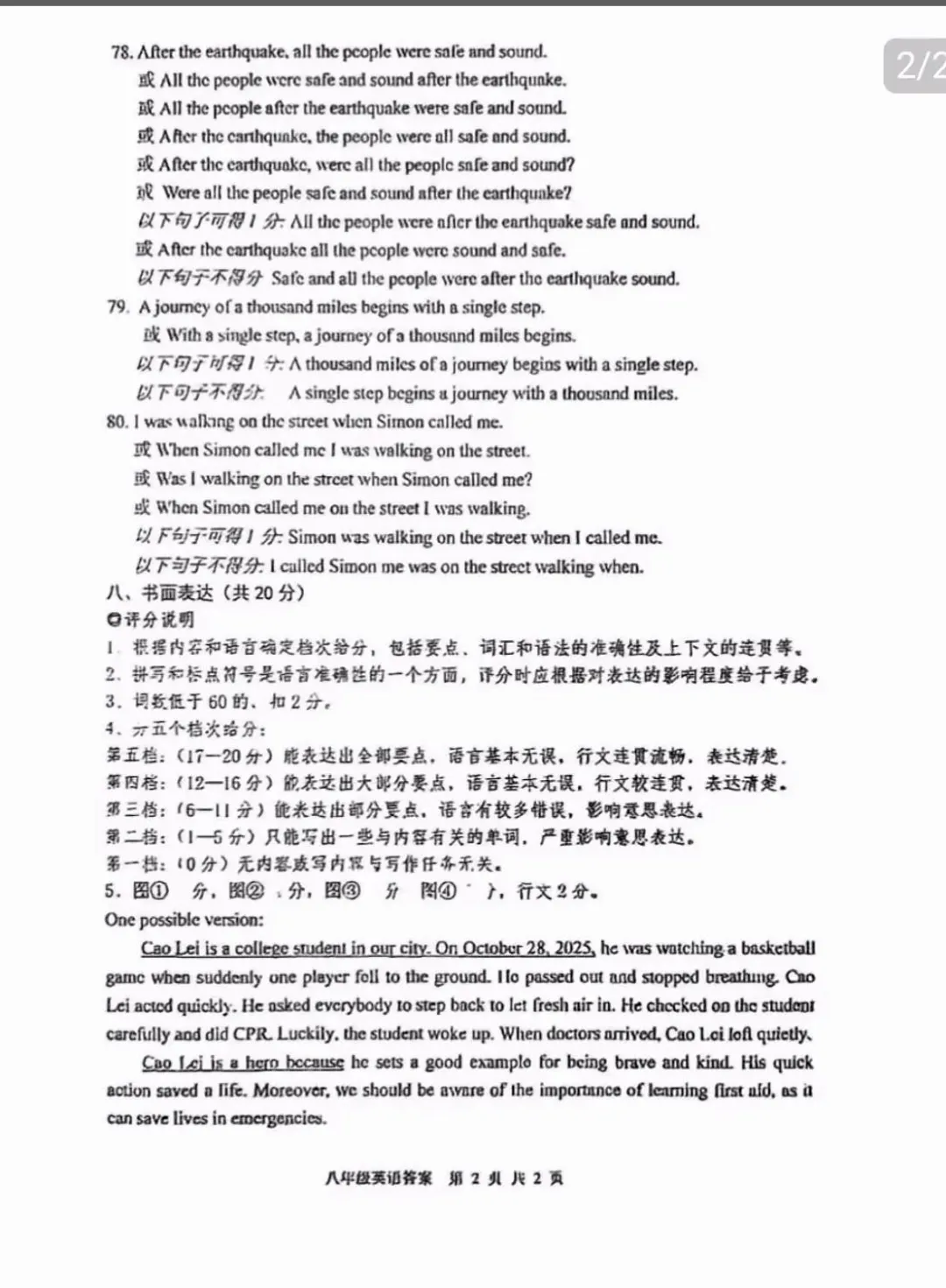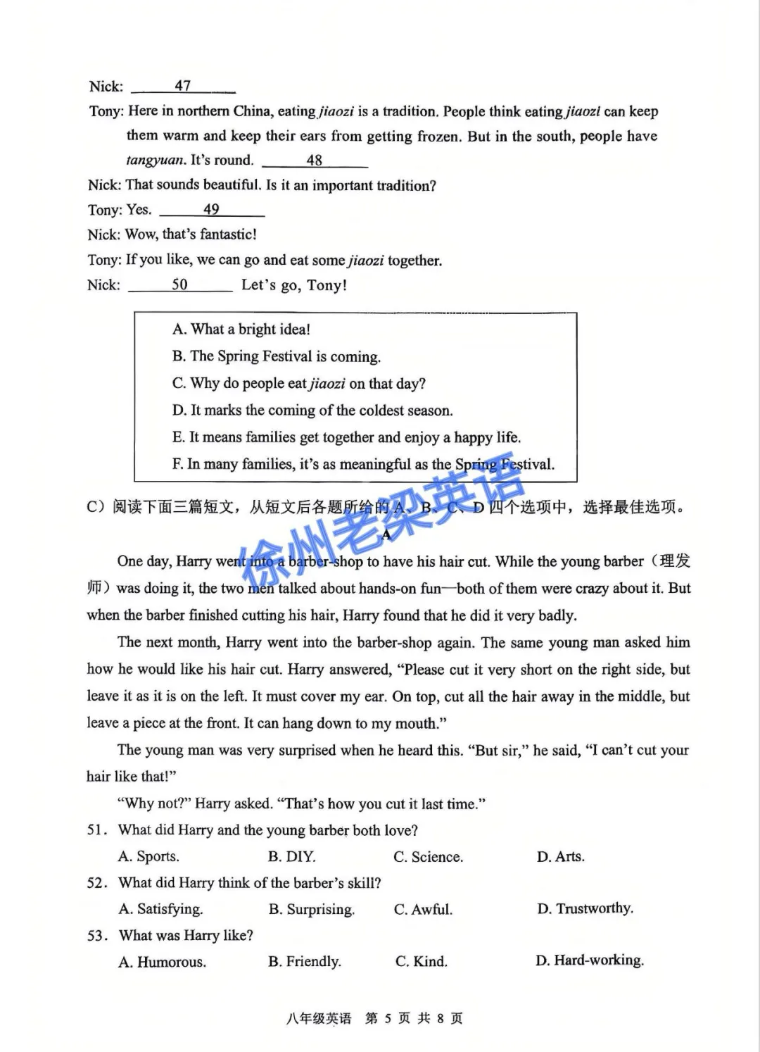 老梁英语给孩子们整理好了刚考完的初一和初二的期末英语试卷及答案,供大家参考学习