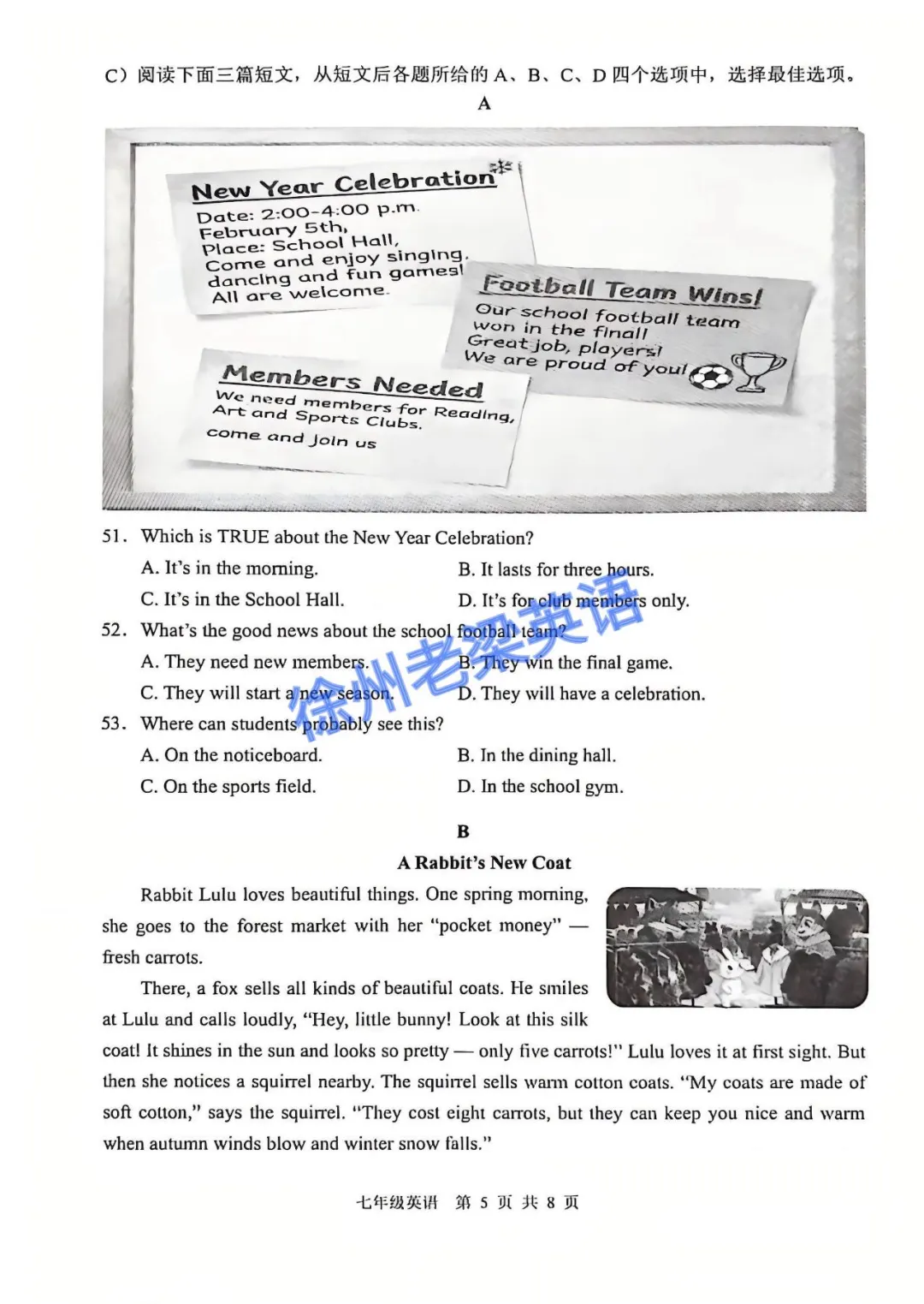 >徐州七八年级上学期期末英语试卷及答案
