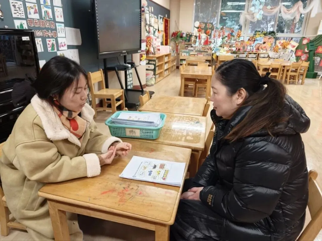 活动当天,家长们准时赴约,与教师开启暖心且深入的成长对话。教师们结合幼儿日常作品、操作单、表征等素材,围绕各领域发展、生活习惯、学习品质、社交能力等核心内容细致交流,让每一份成长都有据可依、清晰可见。