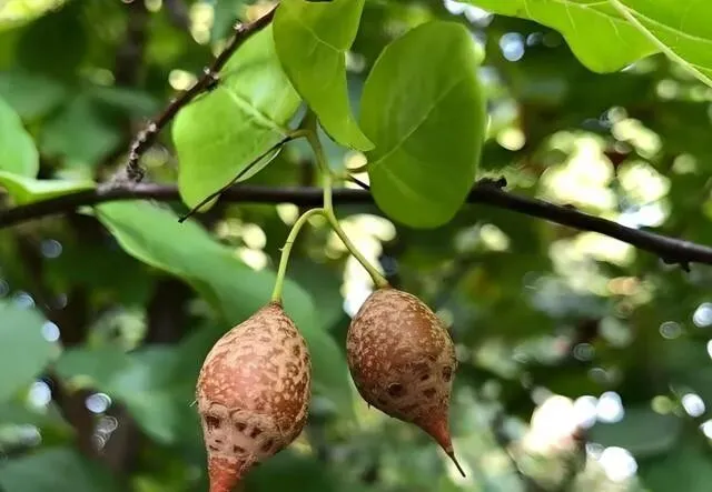 这树的园林价值其实挺高的 , 花好看 , 果子有趣 , 寓意还好——秤锤嘛 , 代表公平公正 , 是"公平之树"。