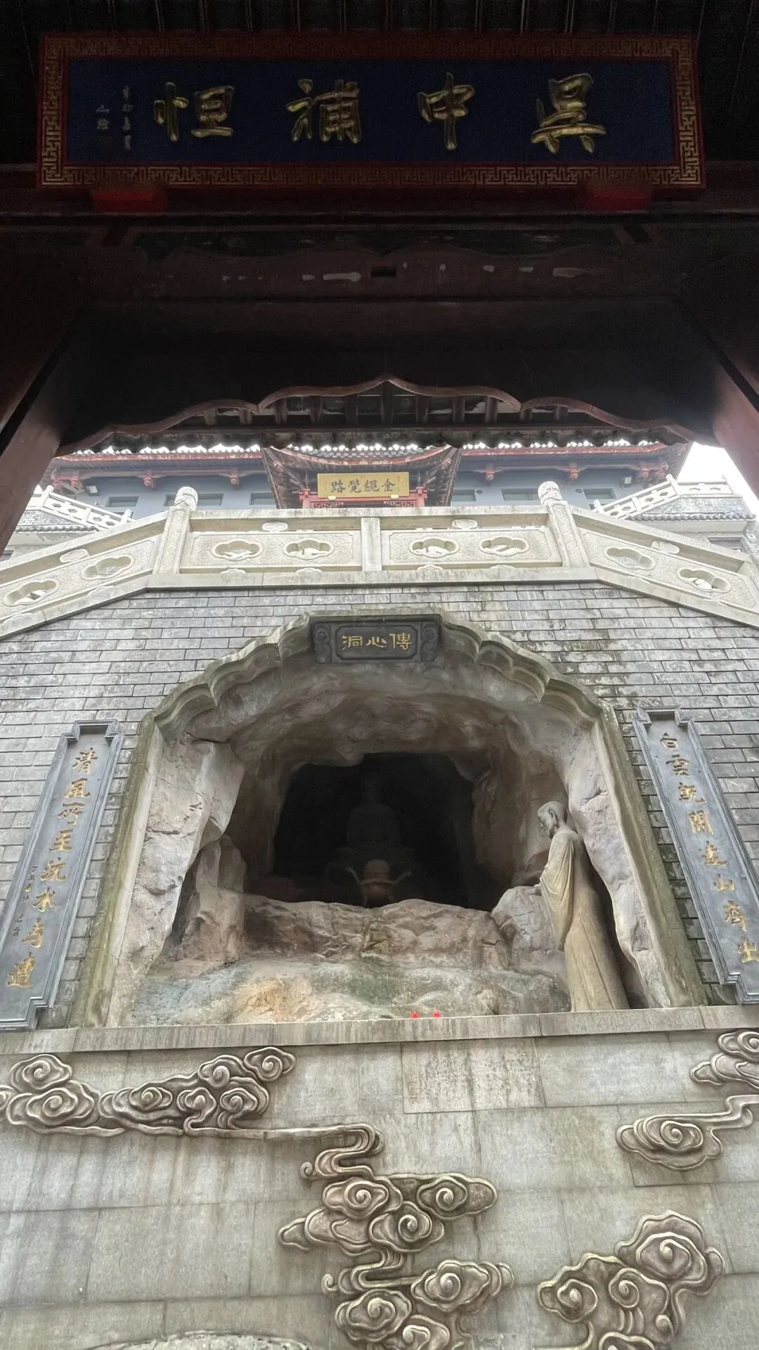寺内景观:寺内有传心洞和妙法洞,传心洞石窟内供奉着禅宗达摩,妙法洞石窟是善财童子参学的场所,洞内的佛像雕塑充满神秘感。此外,还有悬崖边的和合书屋,可供游客抄经、看书。