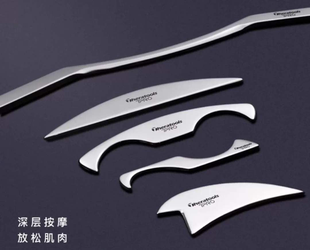 筋膜刀并非传统刀具,而是采用医疗级不锈钢打造的人体工学松解工具。