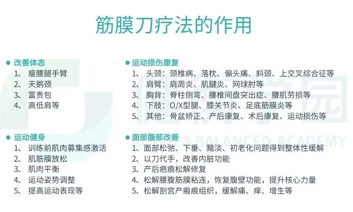 运动达人,定期做筋膜保养,可以释放紧张的筋膜,提高运动能力;不爱运动的人,更可以通过筋膜刀的修复,帮助你改善自身的亚健康状态。