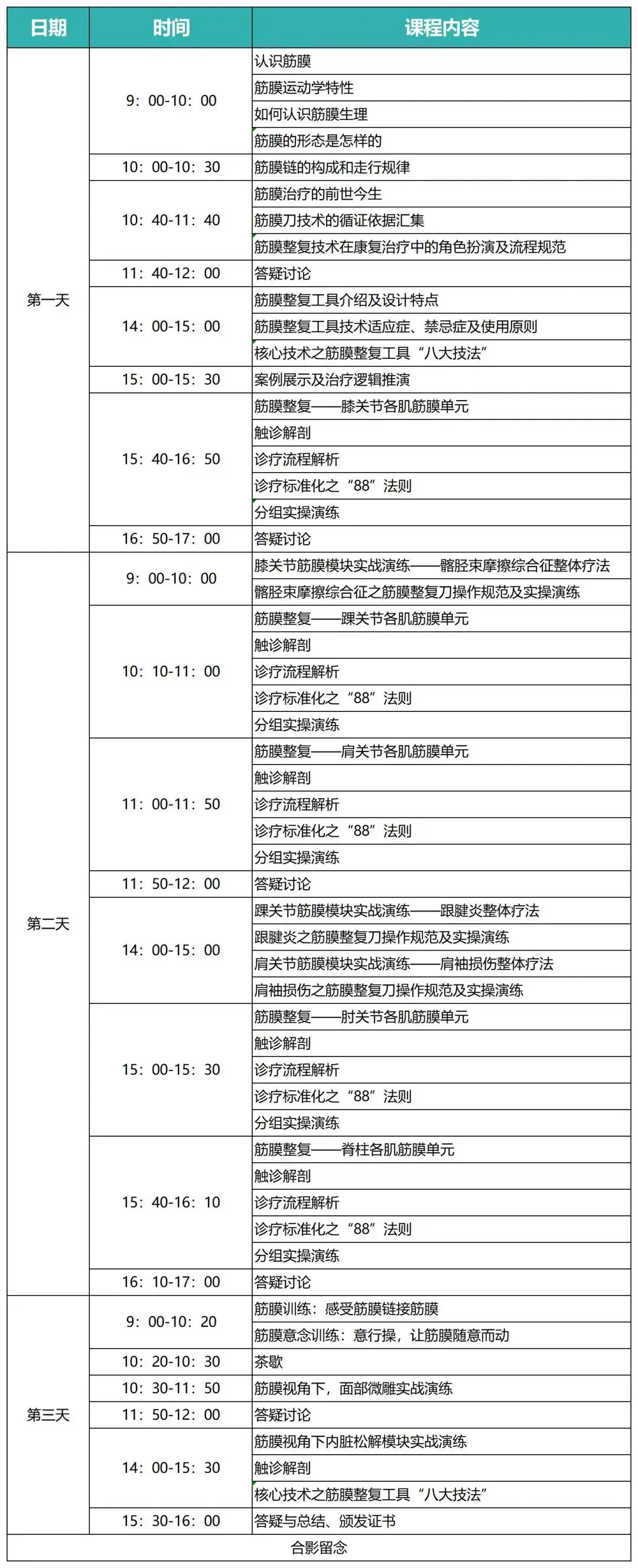 本次课程在传统筋膜刀教学基础上,新增面部与腹部专项技术,将课程时长升级为3天,实现从基础松解到高阶应用的全面覆盖,学完即可独立开展临床服务与项目拓客。