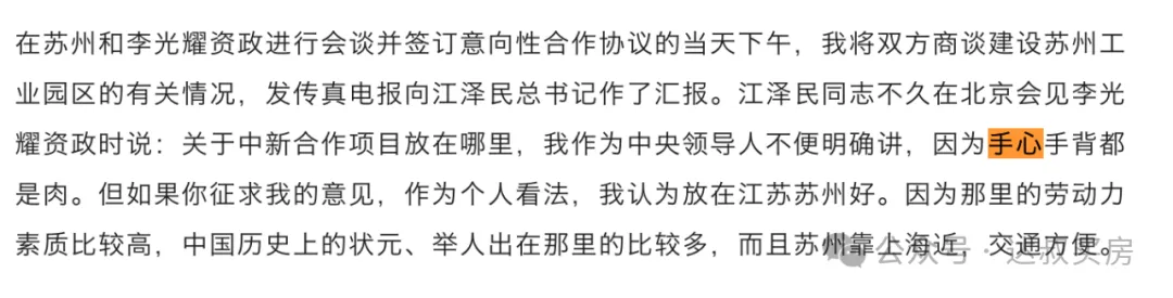 而且按照当时江苏一把手的说法,当时李光耀来江苏的时候,点名要看无锡和苏州。