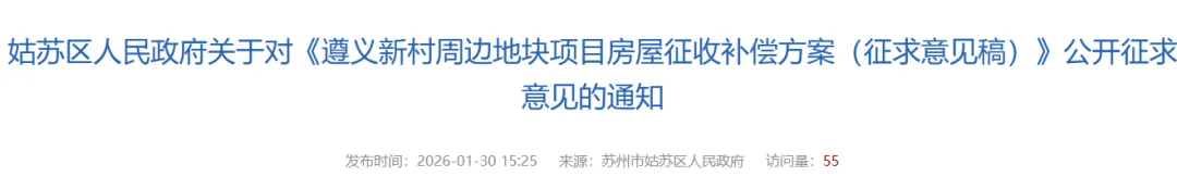 遵义新村周边地块项目房屋征收补偿方案