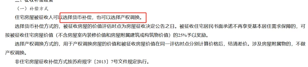 非住宅房屋征收补偿方式按苏府规字〔2013〕7号文件规定执行。
