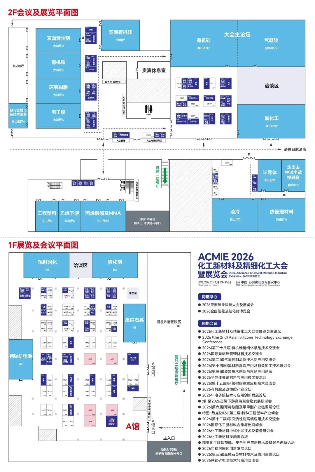 硅基材料是经济社会发展重要的支撑性材料。亚洲是世界硅基材料产业发展和创新的重心之一,为促进亚洲和我国硅基材料领域的技术创新和绿色可持续发展,提升行业整体竞争力与创新力,ACMI与SAGSI将以 “国际视野”、“专业性” 和 “影响力”为特色,在成功举办2届的基础上,拟定于2026年4月13-15日在苏州举办 “2026亚洲硅业科技大会及展览会” (简称AST2026)这一国际交流平台。AST2026与“2026全国催化及催化剂博览会”、“2026化工新材料及精细化工大会暨展览会”联合展出,主要来自有机硅、石英、气凝胶、热管理材料、高端无机硅等硅基新材料;液冷、钙钛矿、氟材料、环氧树脂、表面活性剂、催化剂、乙烯下游高端聚合物、丙烯酸及酯、甲基丙烯酸甲酯、半导体材料、特种工程塑料、辐射固化、电子胶等化工新材料。总面积10000+平方米,参加企业预计1500+,参会规模预计3000+,其中AST2026展出面积4000平米。支持单位:中国石油和化学工业联合会中小企业工作委员会冷却液、导热凝胶、导热硅脂、热相变材料、导热粉体、导热结构材料、气凝胶隔热材料、发泡材料、热管工质、清洗液,热管理系统及配件等钙钛矿材料及组件、高效硅片、薄膜电池材料、叠层电池材料、光伏胶膜、光伏玻璃、背板材料、接线盒与导电材料催化剂、表面活性剂、涂料助剂、橡塑加工助剂、抗氧剂、抗老化剂、增白剂、色浆、色母粒、偶联剂等氟材料制品、含氟精细化学品、半导体及电子用氟材料、基础氟材料等丙烯酸及酯、甲基丙烯酸甲酯、烯烃聚合物、工程塑料、特种纤维、特种橡胶、功能膜材料等特种/功能性环氧树脂、电子级环氧树脂、环氧阻燃材料、环氧胶黏剂、环氧固化剂、环氧特种涂料/涂层、环氧预浸料及相关制品等高性能UV树脂及单体、新型光引发剂、电子用UV涂料及油墨、双固化UV胶、OCA、聚氨酯/环氧/丙烯酸系电子胶、新兴领域电子胶、低介电/高透光/高导热等高性能胶等中试基地、第三方机构、微反应器、评价装置、分散系统、超高低温维持系统、中试小试设备、仪器仪表、软件、自控、泵阀、分析测试设备等2026亚洲硅业科技大会及展览会(AST2026)2026全国催化及催化剂博览会(NCCE2026)2026化工新材料及精细化工大会暨展览会(ACMIE2026)1、2026化工新材料及精细化工大会暨展览会主论坛2、2026 (the 2nd) Asia Silicone Technology Exchange Conference3、2026(第二十八届)有机硅精细化学品技术交流会5、2026(第二届)气凝胶制品新技术新应用交流会6、2026(第十四届)氟材料高端应用及相关加工技术研讨会9、2026(第十五届)环氧树脂高端应用技术交流会11、烯·聚2026年电子胶技术与应用创新发展论坛13、特塑·热点|2026(第六届)丙烯酸酯及甲甲酯产业链发展论坛15、2026(第十二届)表面活性剂高端应用技术交流会19、精细化工环保节能、安全生产与新技术装备融合创新论坛21、2026(第三届)高纯石英材料技术及应用高峰论坛账 号:0200 2282 0902 0125 456