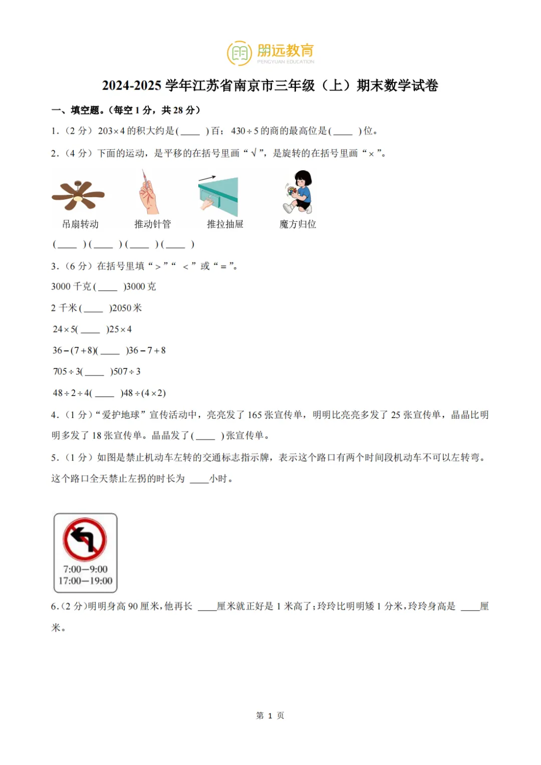 2024-2025 学年江苏省南京市三年级(上)期末数学试卷