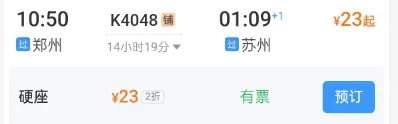 从郑州到苏州只要23元……
