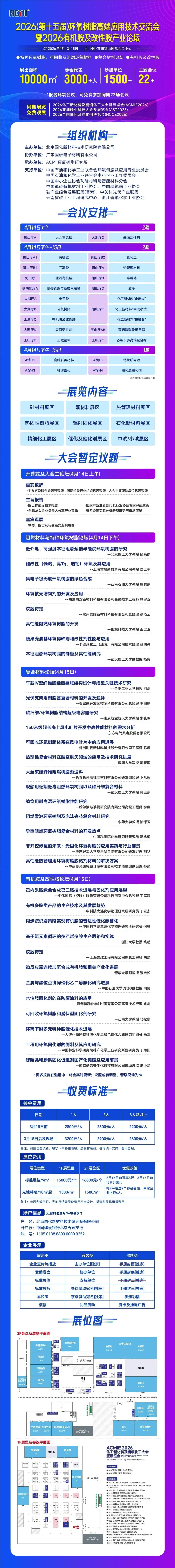 为促进环氧树脂产业协同发展,深入推动行业“反内卷”,引导行业把握创新升级与跨界融合新机遇,构建技术交流、成果转化与资源对接的高端平台,ACMI携手多家龙头企业,定于2026年4月13日至15日在苏州举办“2026(第十五届)环氧树脂高端应用技术交流会暨2026有机胺及改性胺产业论坛”。