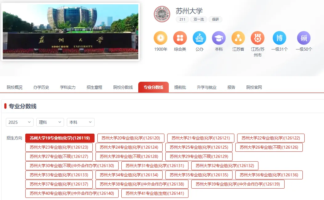 除了以上介绍的4大院系,像能源学院、教育学院、计算机系、金螳螂建筑学院等其他院系的专业详情向、升学数据及院校分数线,我们均已系统整理并收录于“璟志愿”小程序中,想要查看两大校区更多的数据大家可以点击下面的图片,随时查询了解👇