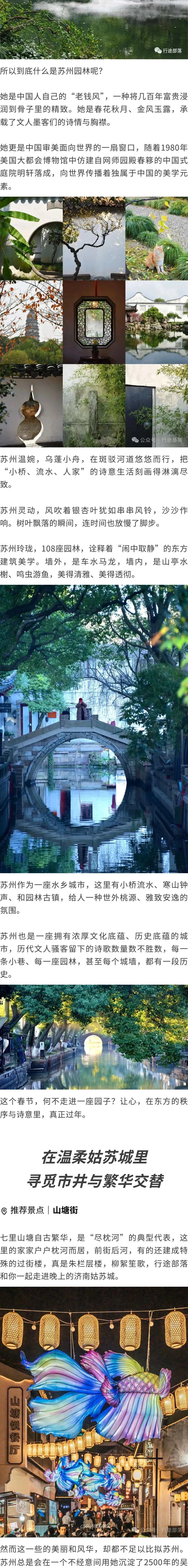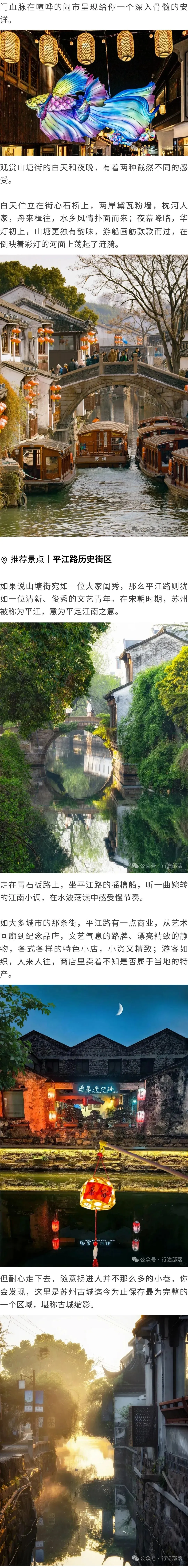 *平江路历史文化街区以平江路为中心,东西两侧有悬桥巷、大儒巷等小巷,尤其东边还保留了多条水巷,水陆并行、河街相邻,典型江南水乡特色。