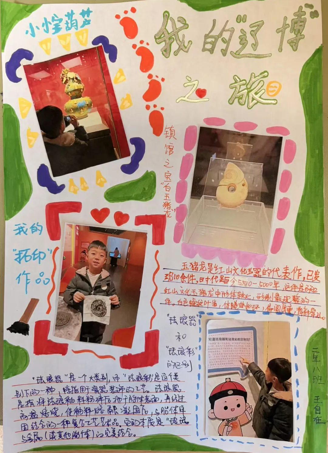每一处打卡、每一次体验,都成为孩子们成长路上的珍贵印记。大家用画笔记录所见所闻,用文字写下心得体会,在亲身实践中读懂中华文明的厚重底蕴,更在心中种下热爱祖国、传承文化的种子。