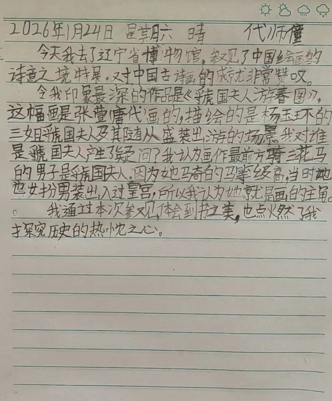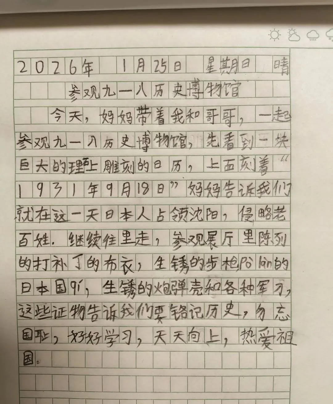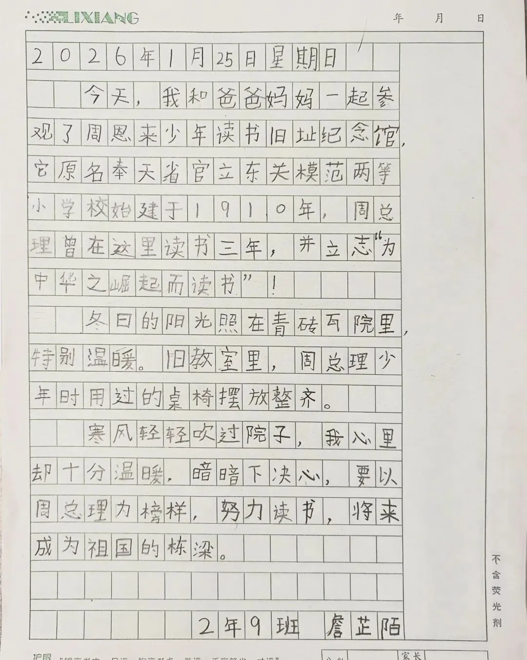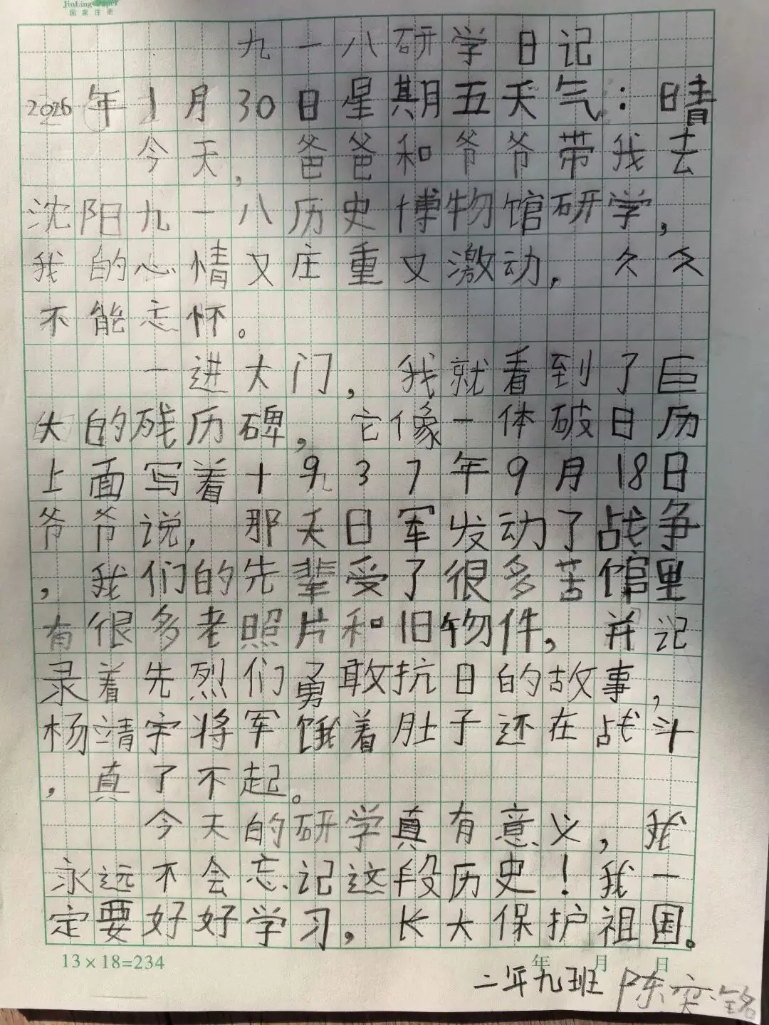 为积极响应 “探源中华文明——行走的思政课” 沈阳市中小学生 2026 年假期社会实践系列活动号召,南京一校长白岛第二小学学子走进沈阳红色基地,撰写研学日记,记录所见所闻所感,开启一场触摸历史、对话文明的沉浸式研学之旅,让思政教育在行走中落地生根,让传统文化在童心中悄然绽放。