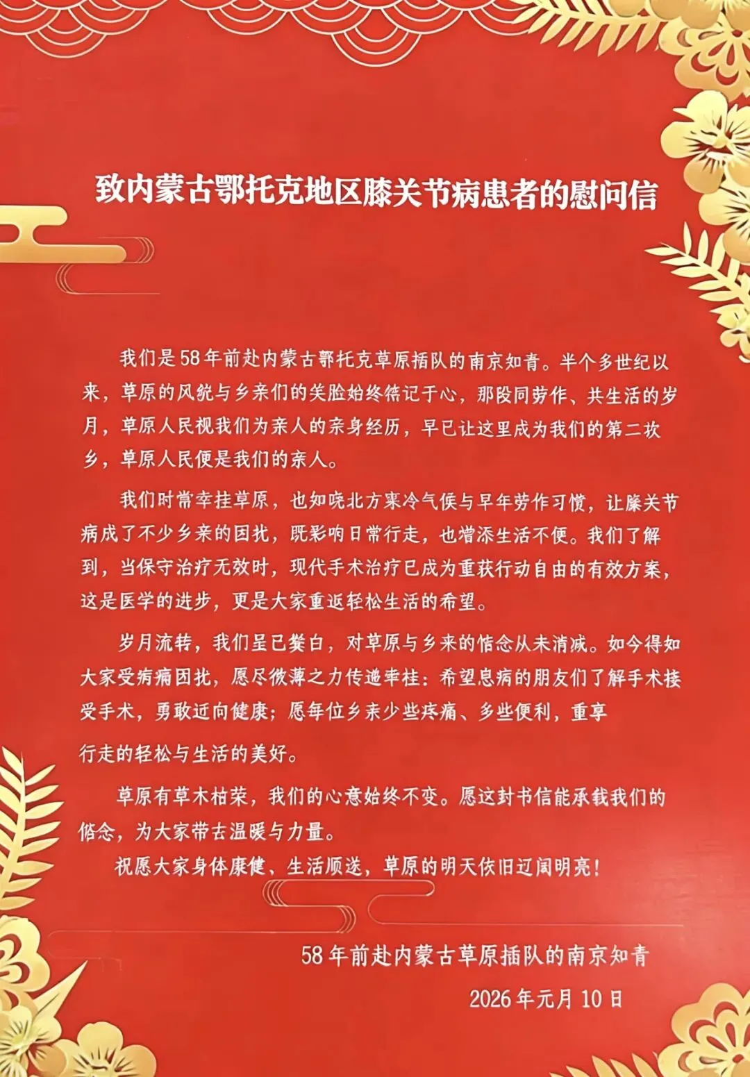 2月3日,“知青暖意传千里 善举温情暖人心”牧民膝关节置换慈善救助专项活动在鄂托克旗乌兰镇都斯图党群服务中心举行。本次活动由鄂托克旗民政局、旗蒙医院综合医院与旗人民医院联合主办,旗慈善总会承办,为当地膝关节置换术后患者提供专项救助与持续关怀。