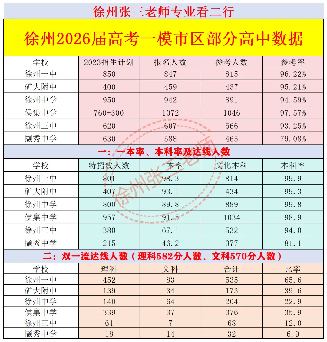 徐州高三一模数据继续整理,百强、市区头六高中数据、文理分数段!