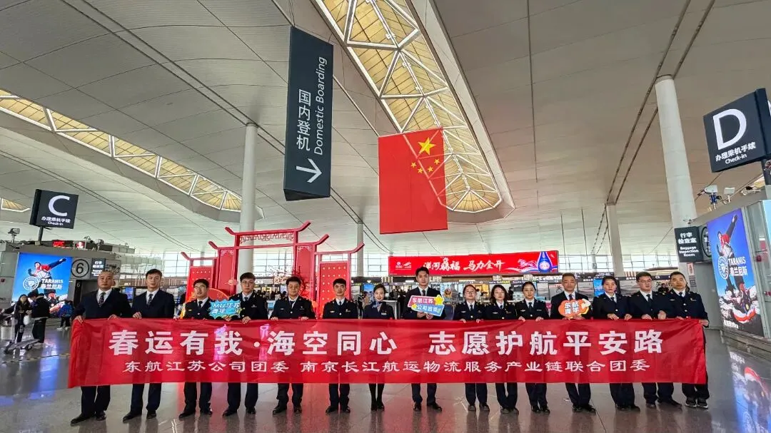 2月2日,为期40天的2026年春运正式拉开帷幕。为深入贯彻春运保障工作要求,深化交通枢纽行业青年共建联动,凝聚春运志愿服务合力,共同营造“平安春运、便捷春运、温馨春运”良好氛围,南京长江航运物流服务产业链联合团委成员单位南京海事局、长江引航中心、长江南京航道局、长江南京通信管理局、长航公安南京分局会同中国东方航空江苏有限公司、板桥汽渡分别在禄口机场和板桥汽渡开展“春运有我 海空同心”“平安春运路 情暖到万家”春运暖程志愿服务活动。
