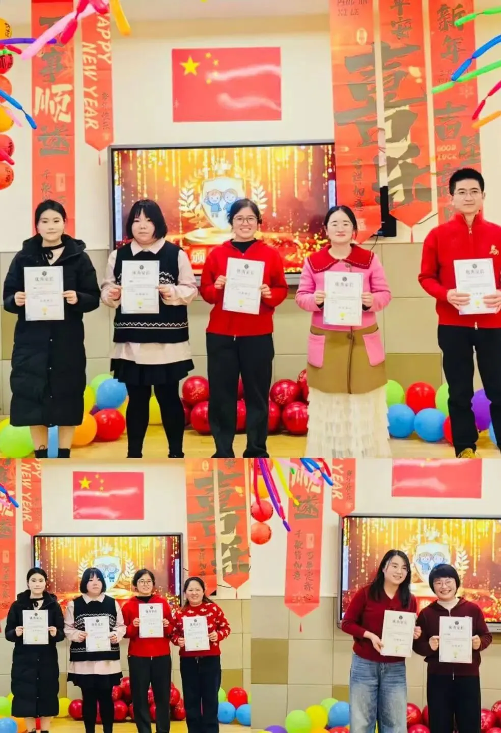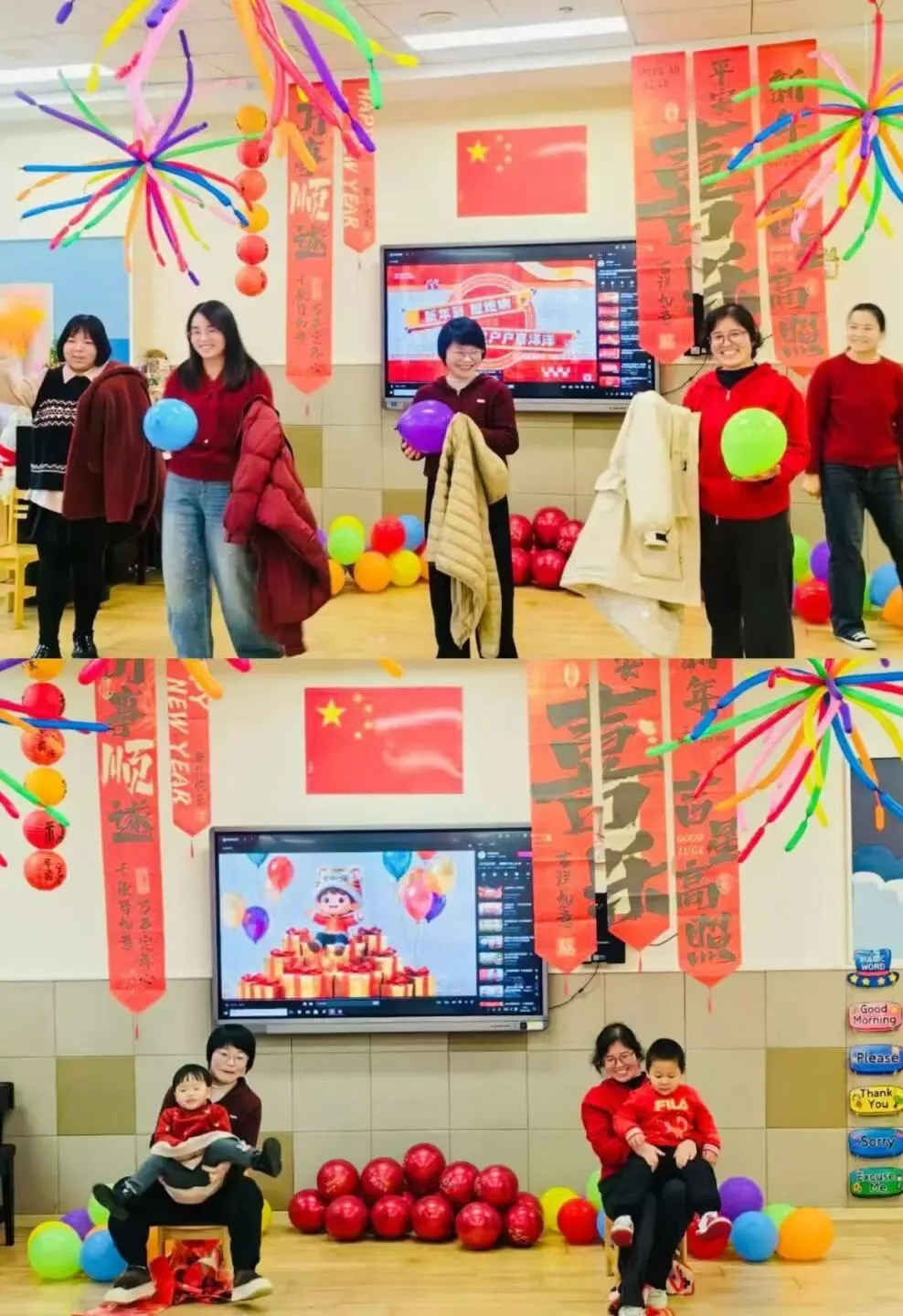 中二班“童心成长,喜乐散学·喜迎新春”散学式暖意浓浓!福气签到贴福字,时光留影定格同伴间的美好瞬间。成长回眸环节,老师与家长一同细数孩子们本学期的点滴进步,高光时刻的颁奖仪式,见证着每个宝贝的亮眼成长。古韵童声古诗快闪、趣味识字汉字秀、英文儿歌话剧萌趣十足,班级体锻拍球特色展示与动感篮球操更是将氛围推向高潮,篮球体能大循环中,孩子们尽显活力与朝气。亲子游戏“马到成功”“踩气球”“团体吃橘子”热闹开玩,幼儿马兰花游戏童趣盎然,家园同乐的时光格外珍贵。愿中二班的宝贝们新春安康,假期愉快,新学期再启新程。