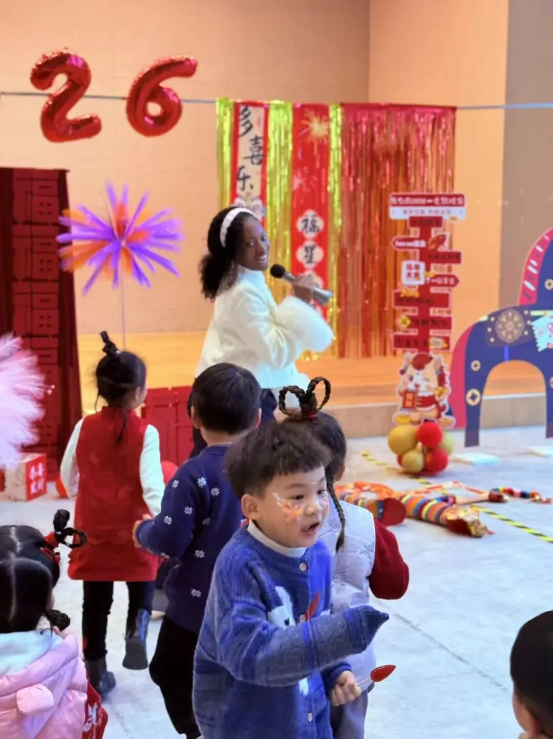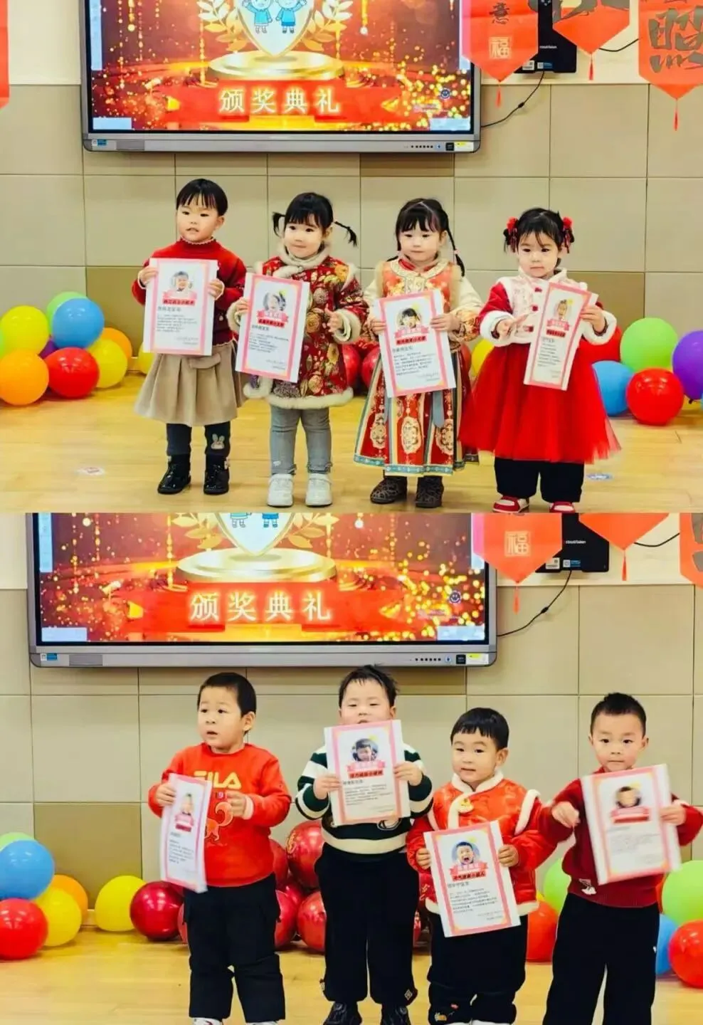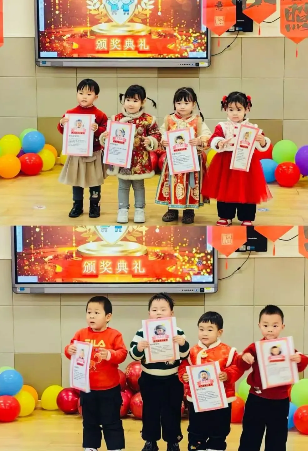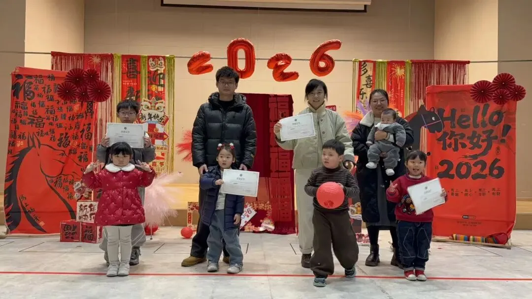 小一班“萌娃迎新年 快乐散学礼”在幼儿园二楼报告厅温馨开启!萌娃们自信登台,舞蹈灵动俏皮、英文儿歌稚嫩动听、古诗词对决精彩连连,用多样的表演展现着一学期的收获,赢得阵阵掌声。专属奖状送到手中,孩子们小脸上洋溢着自豪与喜悦。“吸福气”“闯关砸福”等亲子游戏趣味十足,家长与宝贝携手闯关、默契同乐,现场洋溢着幸福的氛围。最后,集体合影将这份成长的瞬间永久定格,家园携手共证孩子们一学期的美好蜕变。